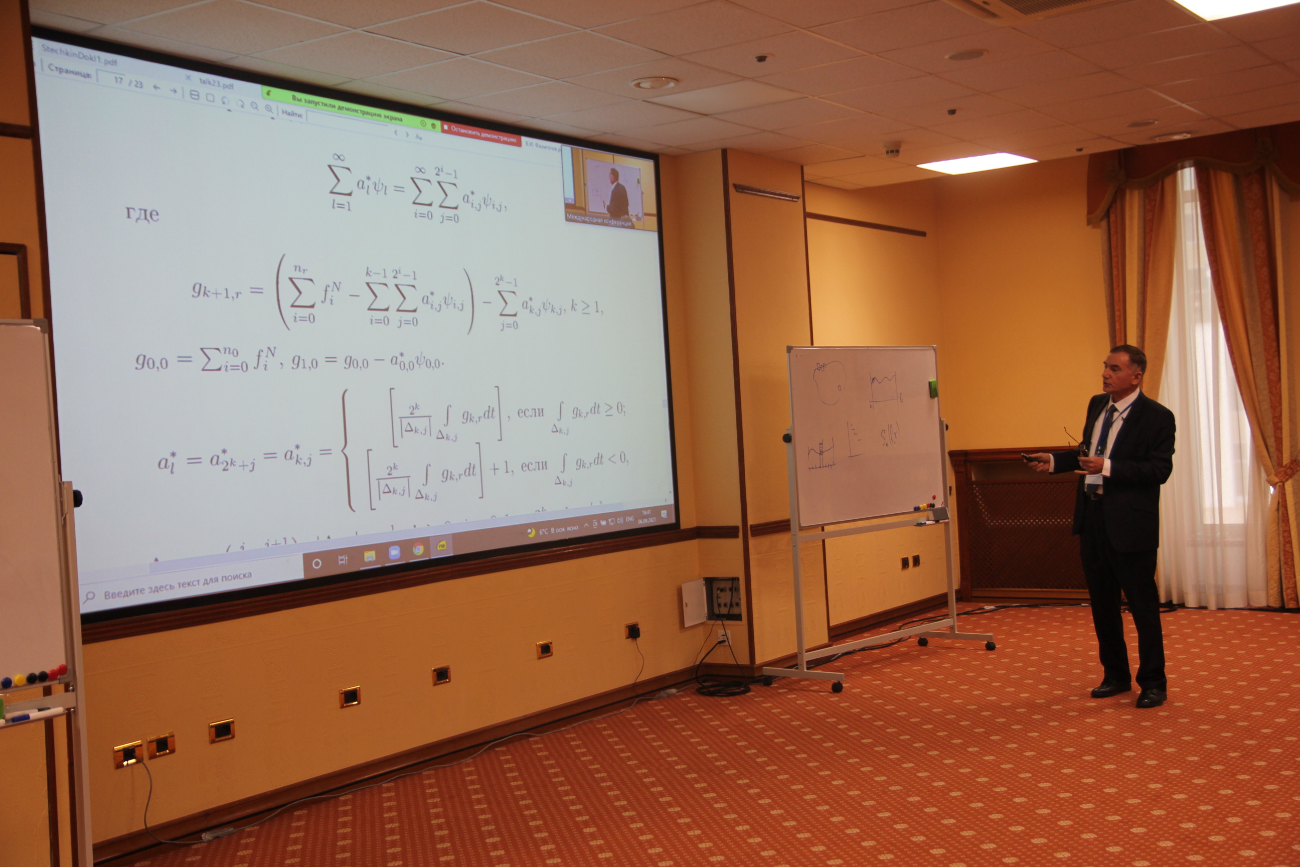 По приглашению и финансовой поддержке оргкомитета конференции профессор Вадим Иванович выступил с докладом «Целочисленное разложение элементов пространств L (p) в ряды типа Фурье по системам из сжатий и сдвигов одной функции».