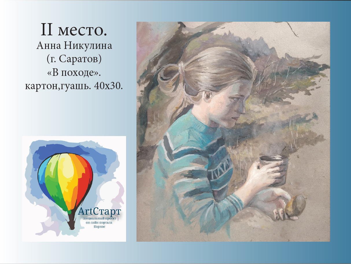 «АРТ-СТАРТ. Этап: Тревеллог_2020» был организован искусствоведческим каналом «ПарНас» (@on-line_art_gallery) в конце 2019 года. Начинающие художники со всей страны присылали работы на тему путешествий, походов, летнего настроения, загородной жизни. В конкурсе приняли участие 250 молодых живописцев, в том числе девять студентов направления «Дизайн» ИнПИТ СГТУ имени Гагарина Ю.А. под руководством доцента кафедры «Медиакоммуникации» Светланы Финогеновой.