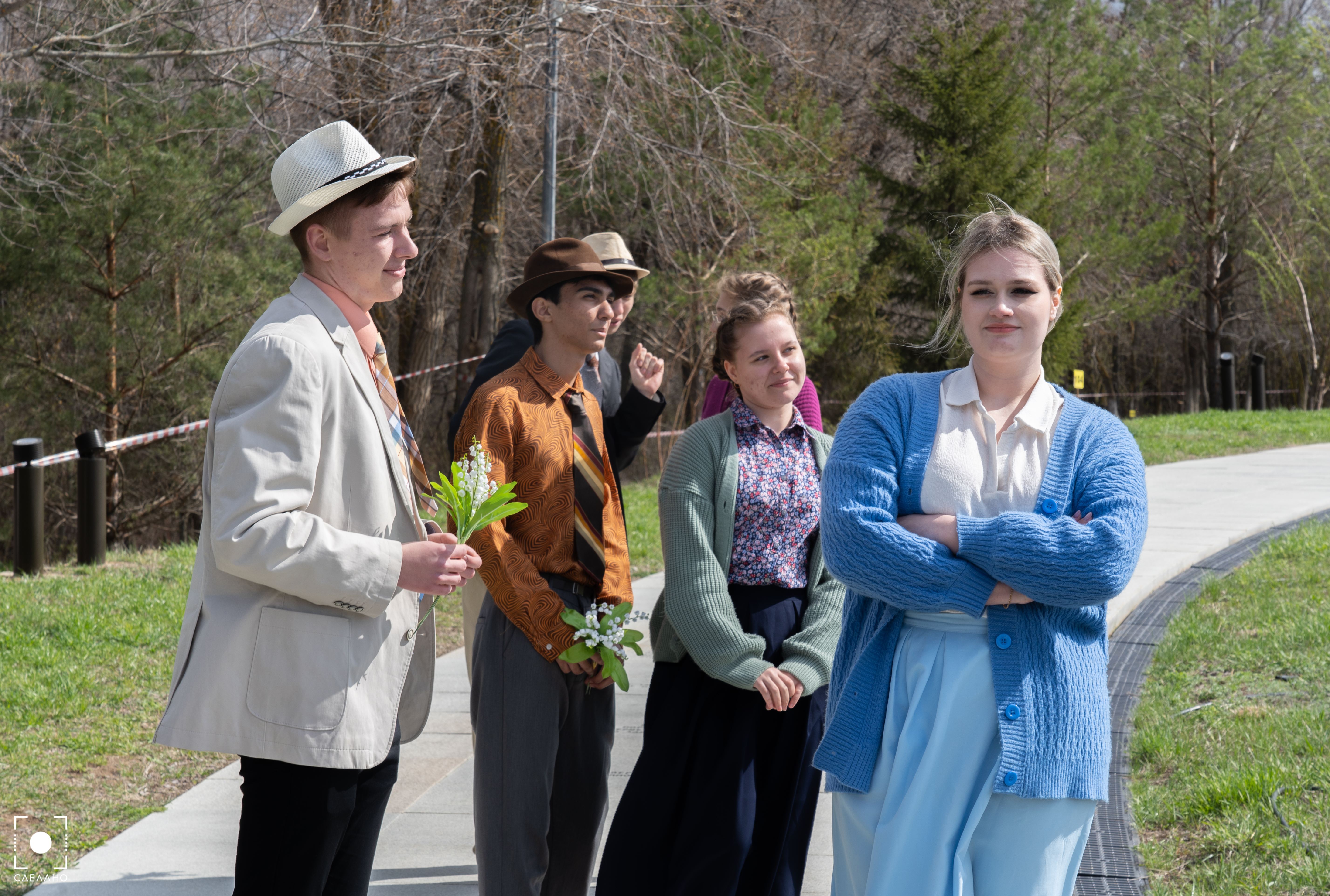 В финале спектакля гости поприветствовали прибывшего на землю «Юрия Гагарина» и получили открытки с известным фото первого космонавта после приземления.