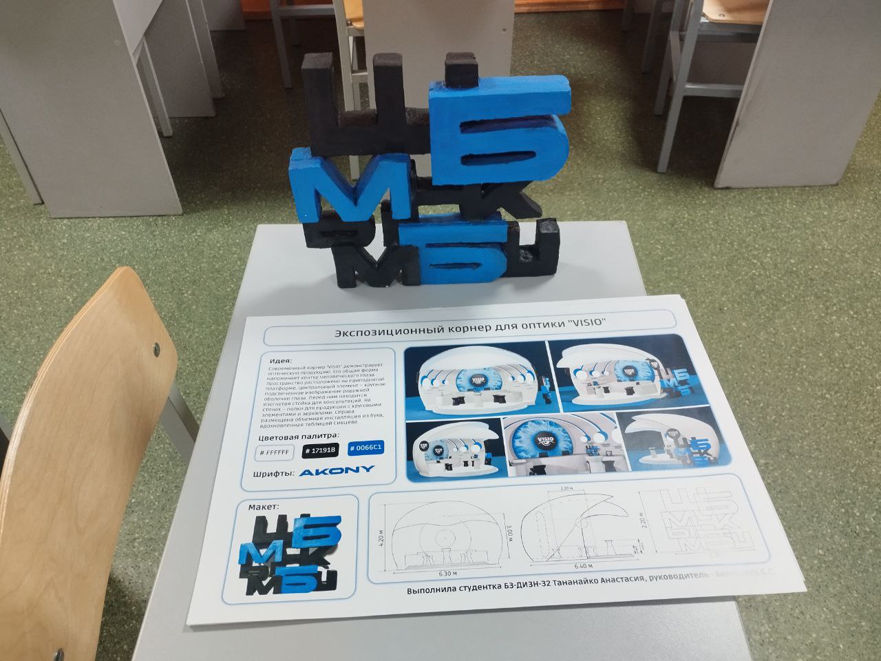 По дисциплине «Цифровые искусства и эксподизайн» студенты придумывают выбор оформления витрины магазина, выставочного пространства или рекламного корня, а также изготавливают макеты арт-объекта, который есть в проекте.