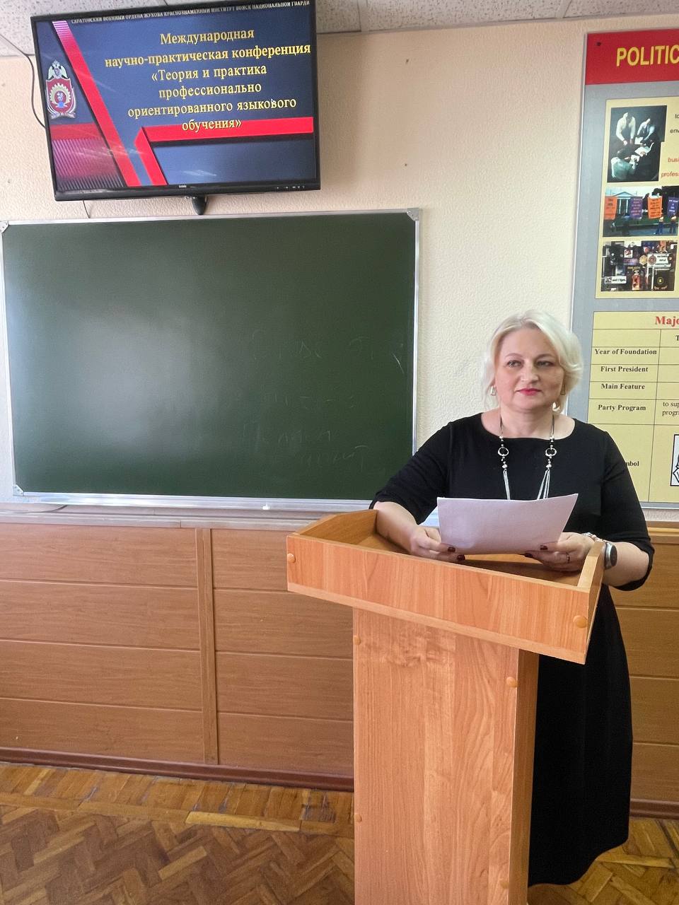 Преподаватели кафедры «Переводоведение и межкультурная коммуникация» Института прикладных информационных технологий и коммуникаций СГТУ имени Гагарина Ю.А. приняли участие в Международной научно-практической конференции «Теория и практика профессионально ориентированного языкового обучения», организованной кафедрой иностранных языков Саратовского военного ордена Жукова Краснознаменного института войск национальной гвардии РФ.
