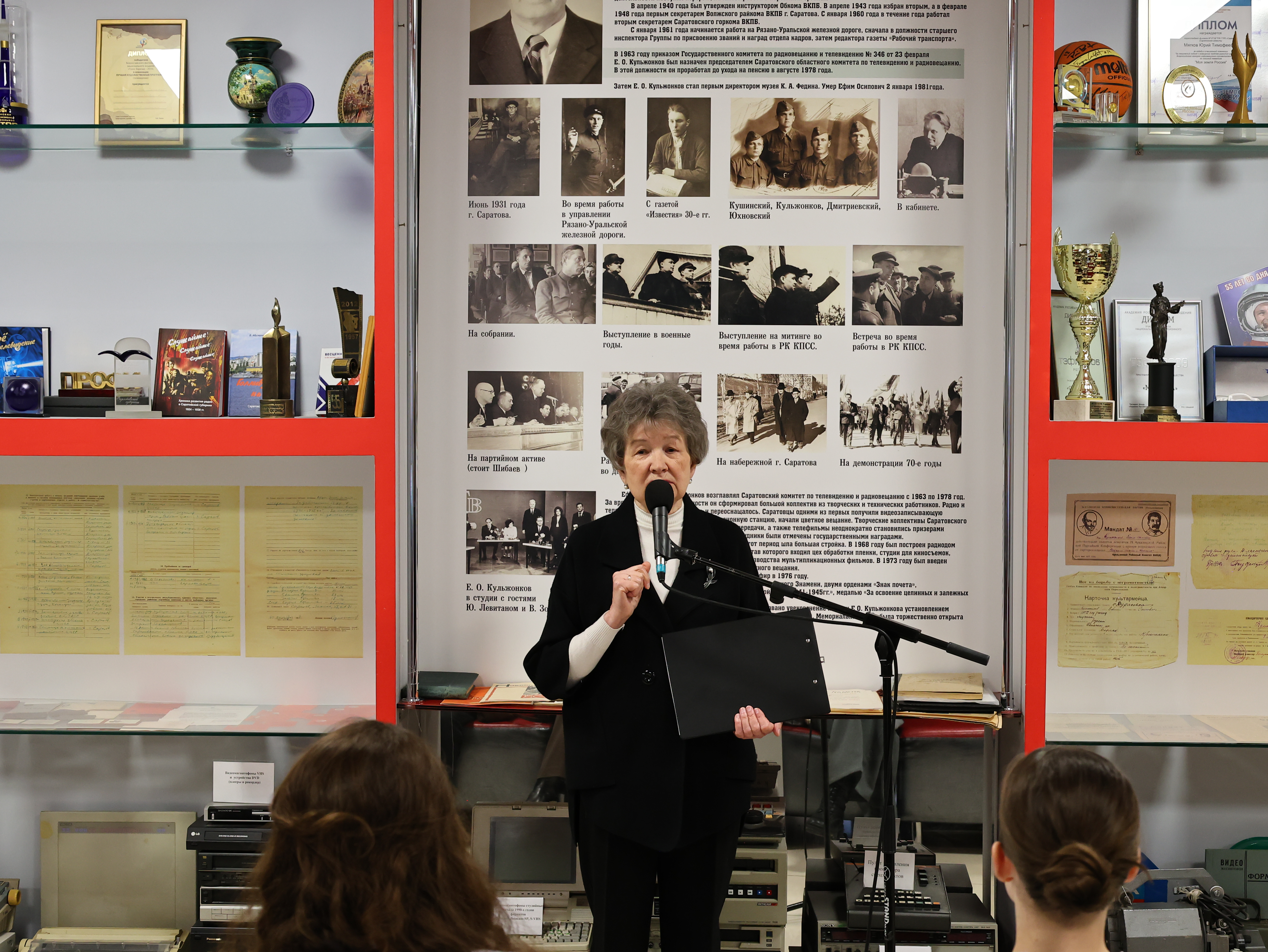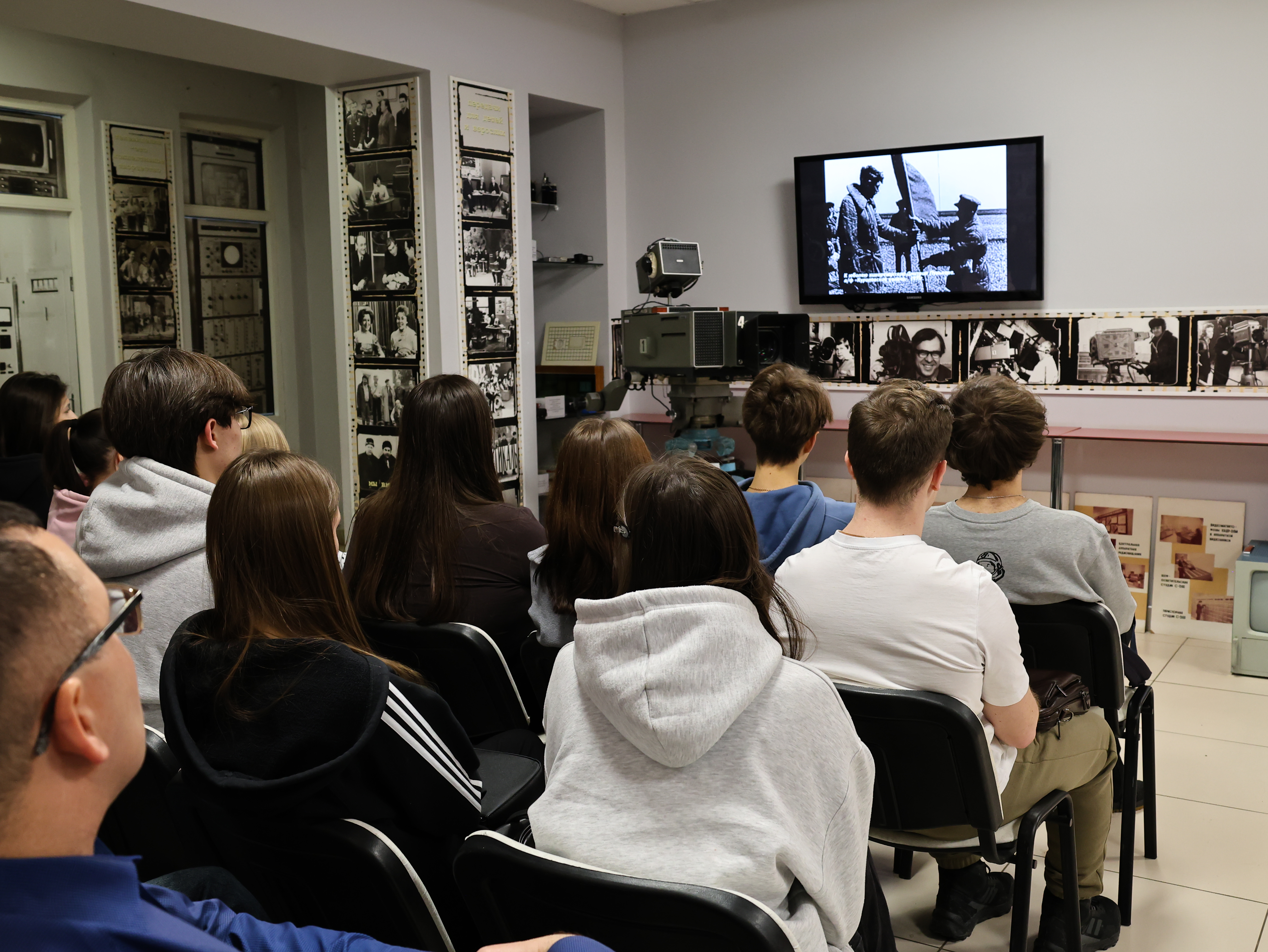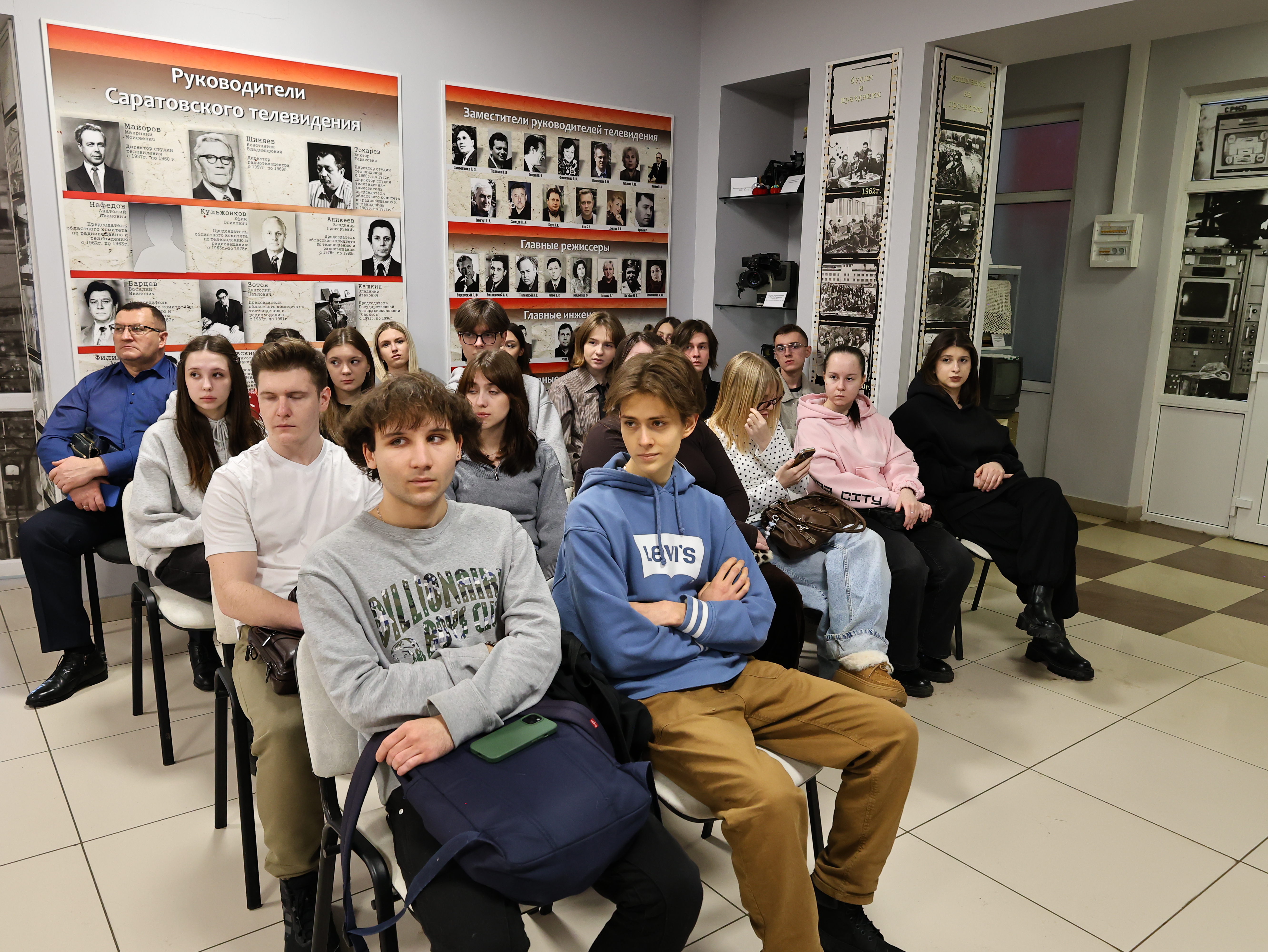 Студенты 1-го и 4-го курсов направления «Телевидение» вместе со своим куратором В. О. Варзовым посетили авторскую интерактивную лекцию члена Союза журналистов России, директора музея ГТРК «Саратов» Т.А. Пашкиной «Саратов в годы Великой Отечественной войны».