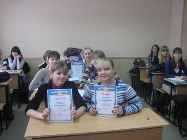 По итогам олимпиады первое место заняла Н. Барсукова, второе место - Е. Мещеркина, третье место - Ю. Герасимова. Победители награждены почетными грамотами и подарками.