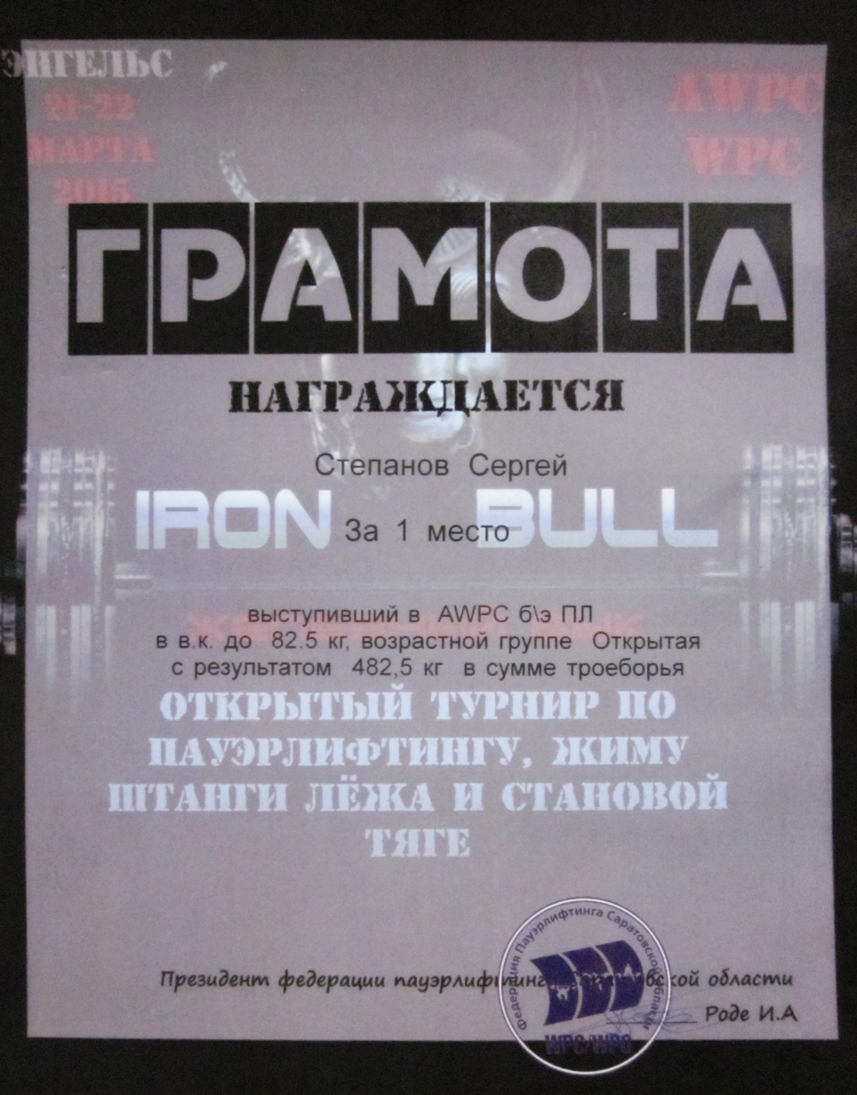 21-22 марта в Энгельсе проходили соревнования по пауэрлифтингу и отдельным движениям в рамках Открытого турнира по пауэрлифтингу, жиму штанги лежа и становой тяге «IRON BULL». В этих соревнованиях принял участие и сотрудник СГТУ имени Гагарина Ю.А. Ассистент кафедры