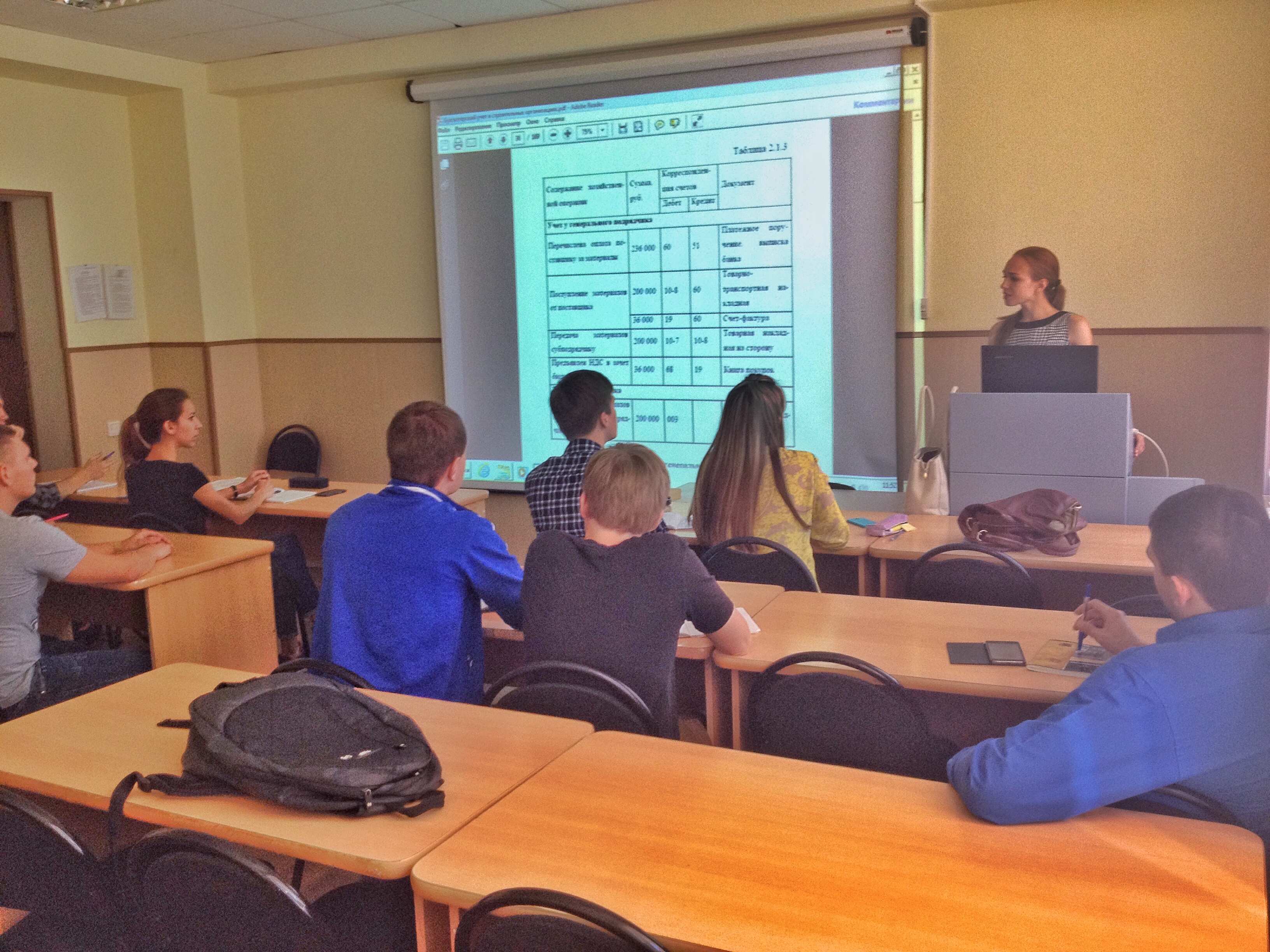 22 сентября 2015 года в 5 корпусе СГТУ имени Гагарина Ю.А. прошел мастер-класс на тему "Особенности бухгалтерского учета в строительстве" под руководством преподавателя Шиловской М.С. В данном мероприятии принимали участие студенты 3-го курса направления "Экономика".