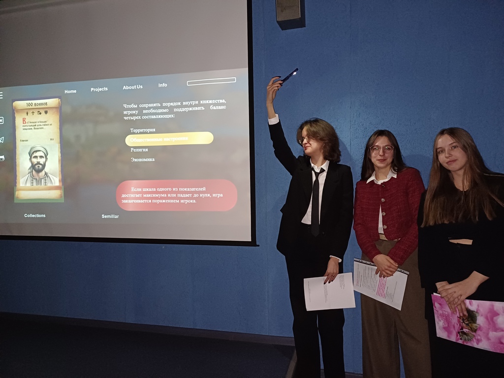 На кафедре «История и философия» Социально-экономического института прошла защита студенческих командных цифровых проектов «Разработка концепции игры «Российская цивилизация»» под руководством доцента кафедры Абросимовой Ирины Александровны. Работы выполнены командами студентов первого курса б1-ИФСТ Института прикладных информационных технологий и коммуникации и с2-ИБС, б2-ИФБС Института электронной техники и приборостроения.