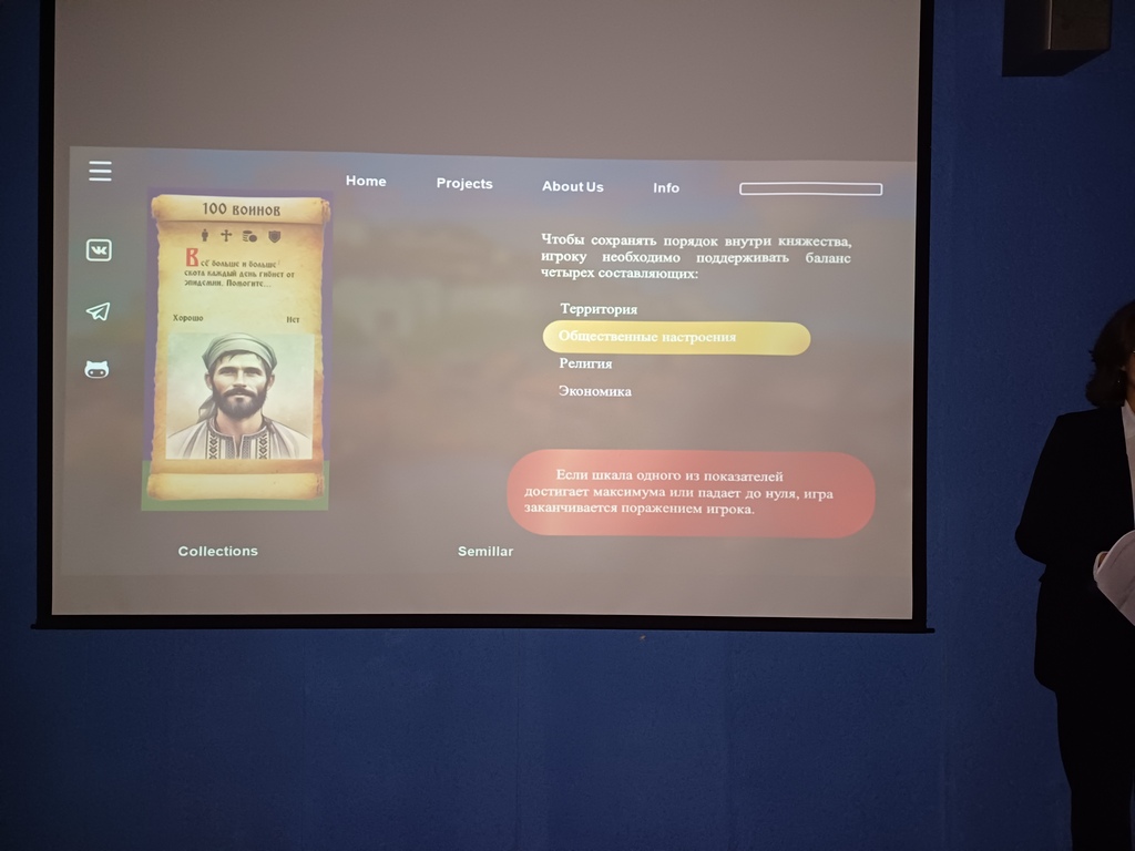 На основе методологии цивилизационного подхода студенты разработали концептуальную модель российской цивилизации, описали ее характеристики. Были предложены различные механики игры, дана визуализация элементов игры. Подобные проекты позволяют в увлекательной форме изучать историко-культурный контекст российской государственности. Студенты первого курса получают опыт работы в коллективе и возможность проявления лидерских качеств.