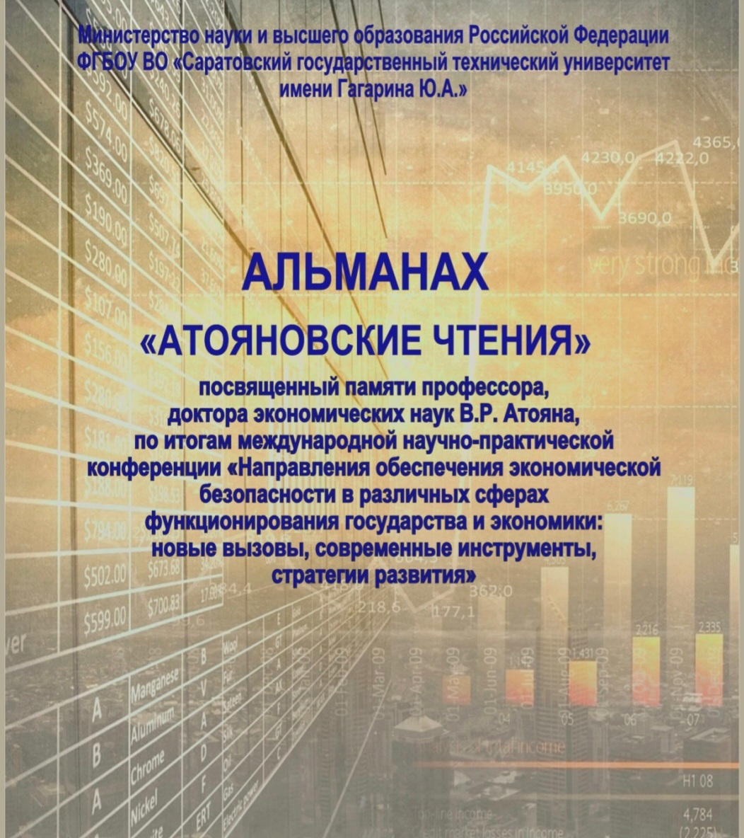 Кафедра «Отраслевое управление и экономическая безопасность» Социально-экономического института СГТУ имени Гагарина Ю.А. выпустила альманах «Атояновские чтения», посвященный памяти профессора, доктора экономических наук Вазгена Рубеновича Атояна.
