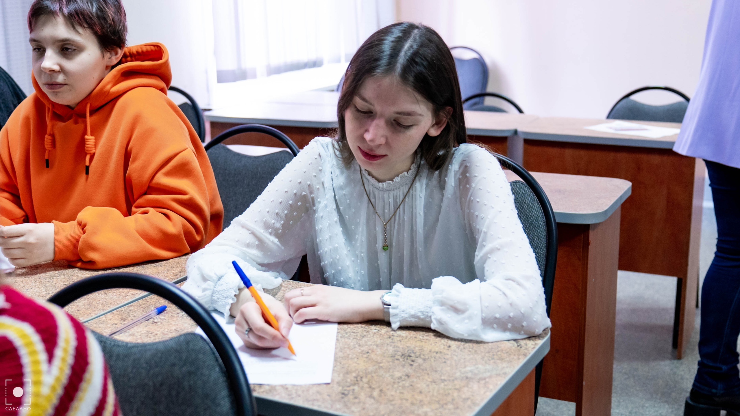 Сначала ребята прослушали диктант в формате видеотрансляции. Затем текст диктанта вживую читала доцент кафедры ПМК Ольга Шаповалова. Благодарим доцента кафедры ПМК Екатерину Феклину за регистрацию площадки и организационную помощь. Параллельно на площадке Профессионально-педагогического колледжа доцент кафедры ПМК Оксана Матасова провела диктант со студентами СПО.