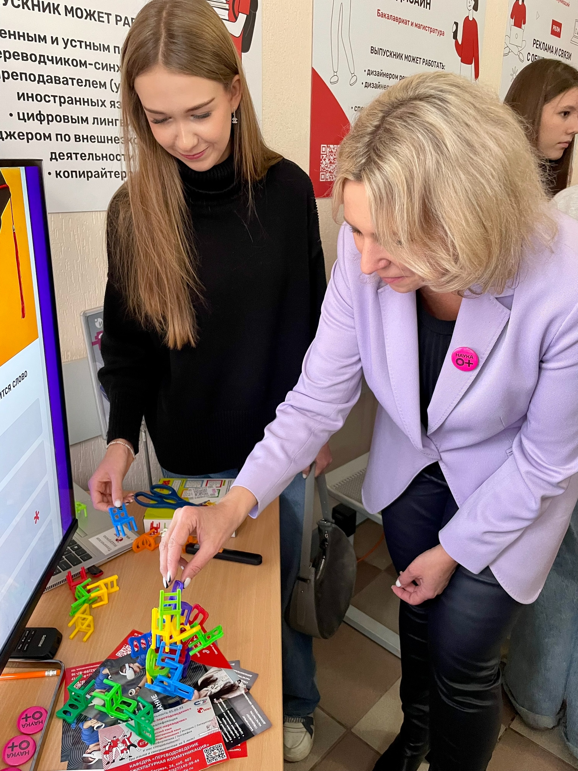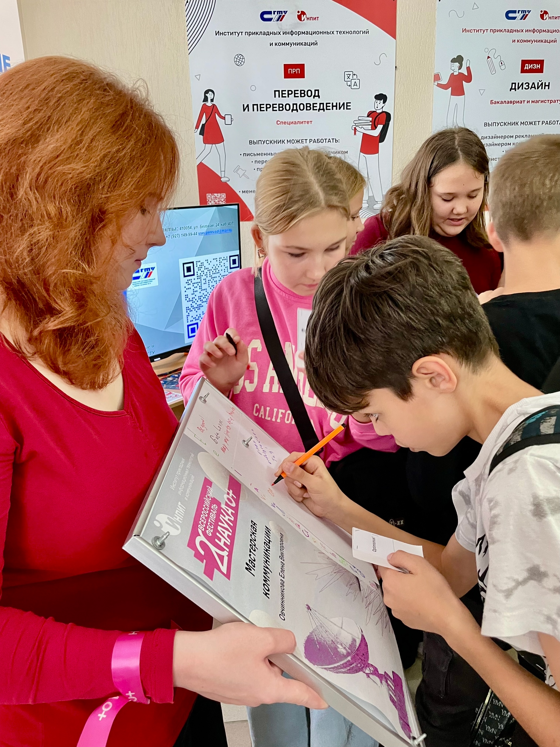 Доцент кафедры Мария Дубовицкая и преподаватель Софья Раткевич работали с ребятами над аудиовизуальным переводом. Школьники узнали, как использовать КТ (машинный перевод) и ИИ (искусственный интеллект) при переводе аудиовизуального контента; попробовали отличить человеческий перевод от перевода, сделанного искусственным интеллектом. А в качестве примеров наставники предлагали фразы из известных фильмов и мультфильмов.