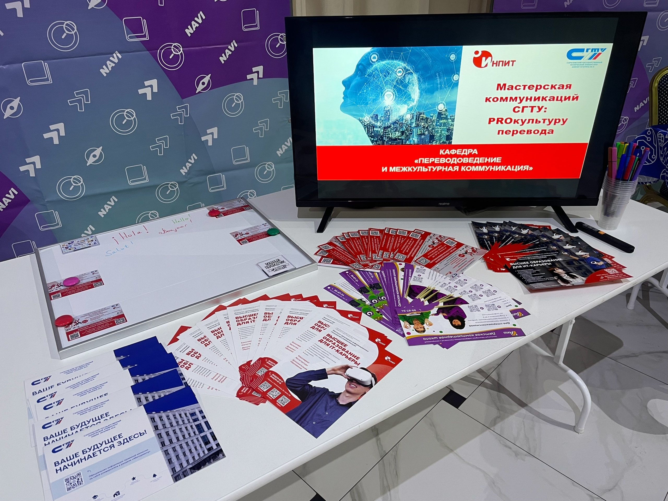 Кафедра «Переводоведение и межкультурная коммуникация» ИнПИТ СГТУ имени Гагарина Ю.А. приняла участие в работе образовательной выставки «Навигатор поступления», где школьники смогли узнать о перспективных специальностях и востребованных профессиях ближайшего десятилетия.
