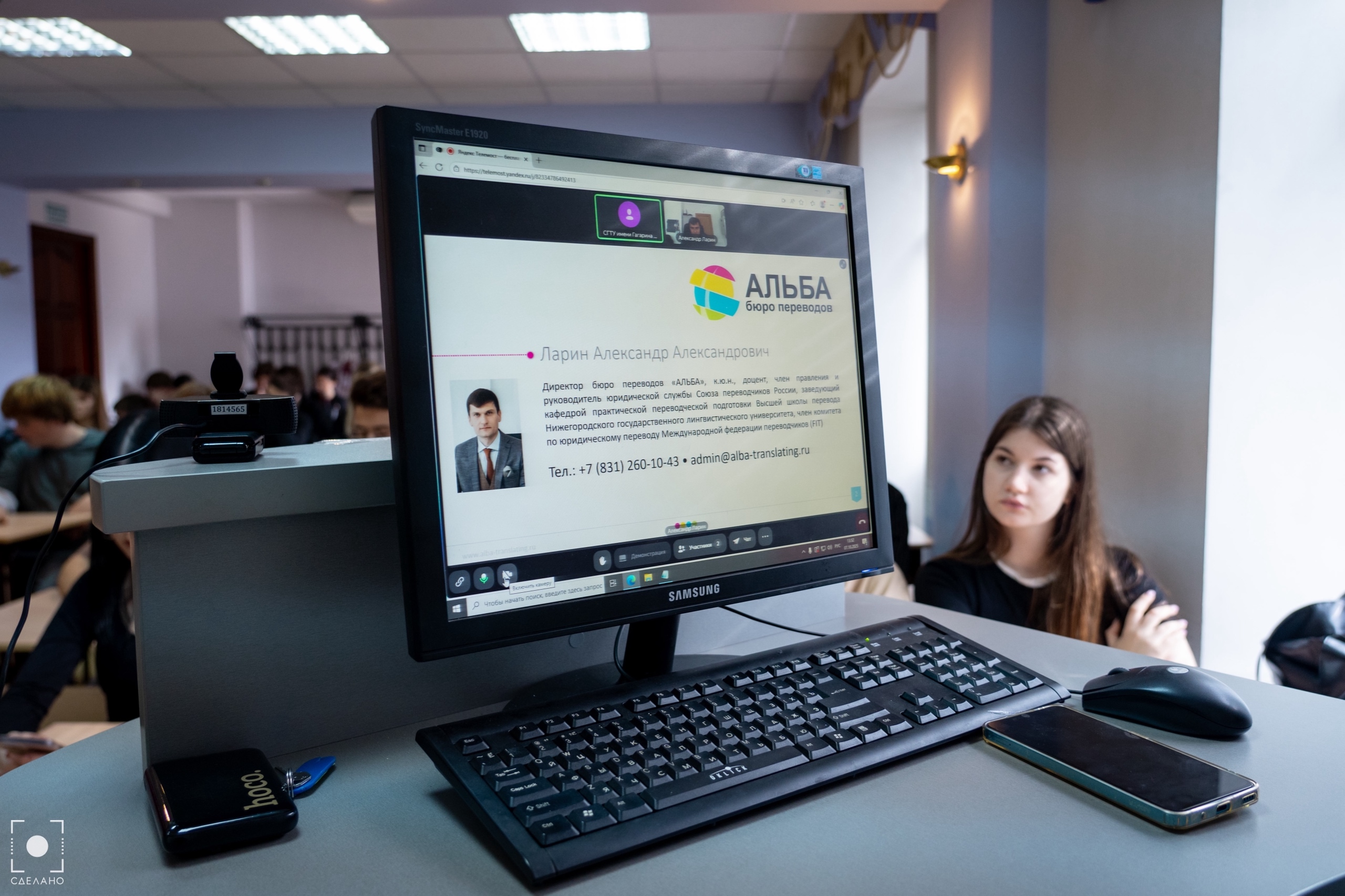 Телемост с директором бюро переводов «Альба», руководителем юридической службы Союза переводчиков России, зав. кафедрой практической переводческой подготовки Высшей школы перевода Нижегородского государственного лингвистического университета, членом комитета по юридическому переводу Международной федерации переводчиков (FIT) Александром Лариным был посвящен правовым аспектам работы переводчика. Модераторами мероприятия выступили заведующий кафедрой ПМК Елена Овчинникова и доцент Анна Дворецкая.