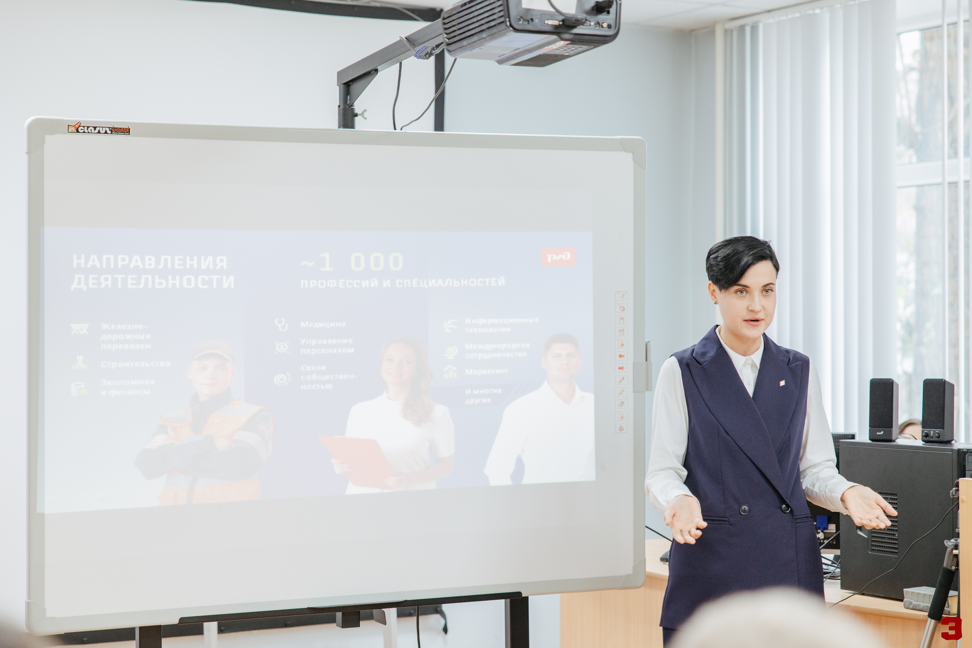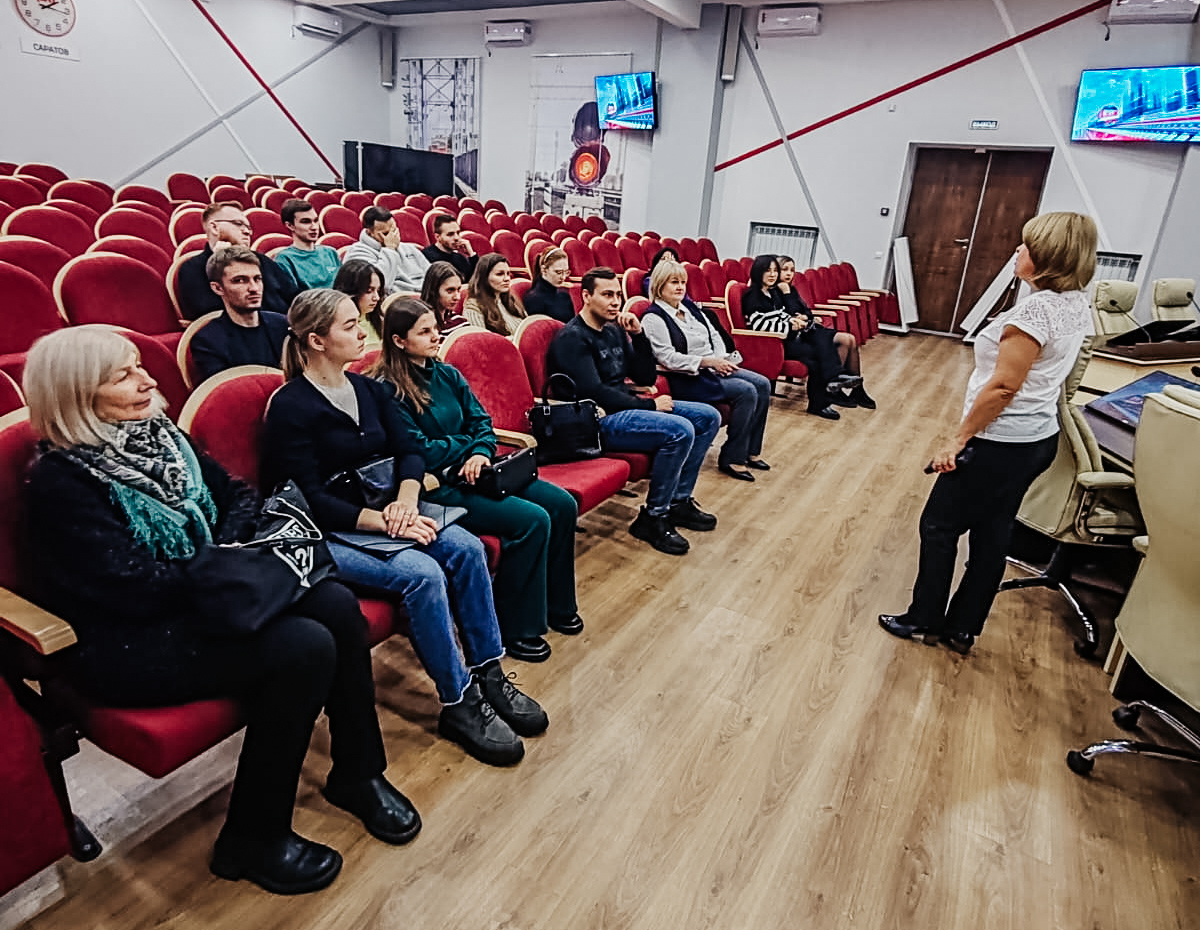 Начальник отдела по подбору персонала Приволжской железной дороги ОАО «РЖД» Александра Молодцова познакомила студентов специальности «Экономическая безопасность» с деятельностью организации, социально-экономической политикой госкорпорации, процессами обучения и развития сотрудников, а также поделилась личным опытом карьерного продвижения.