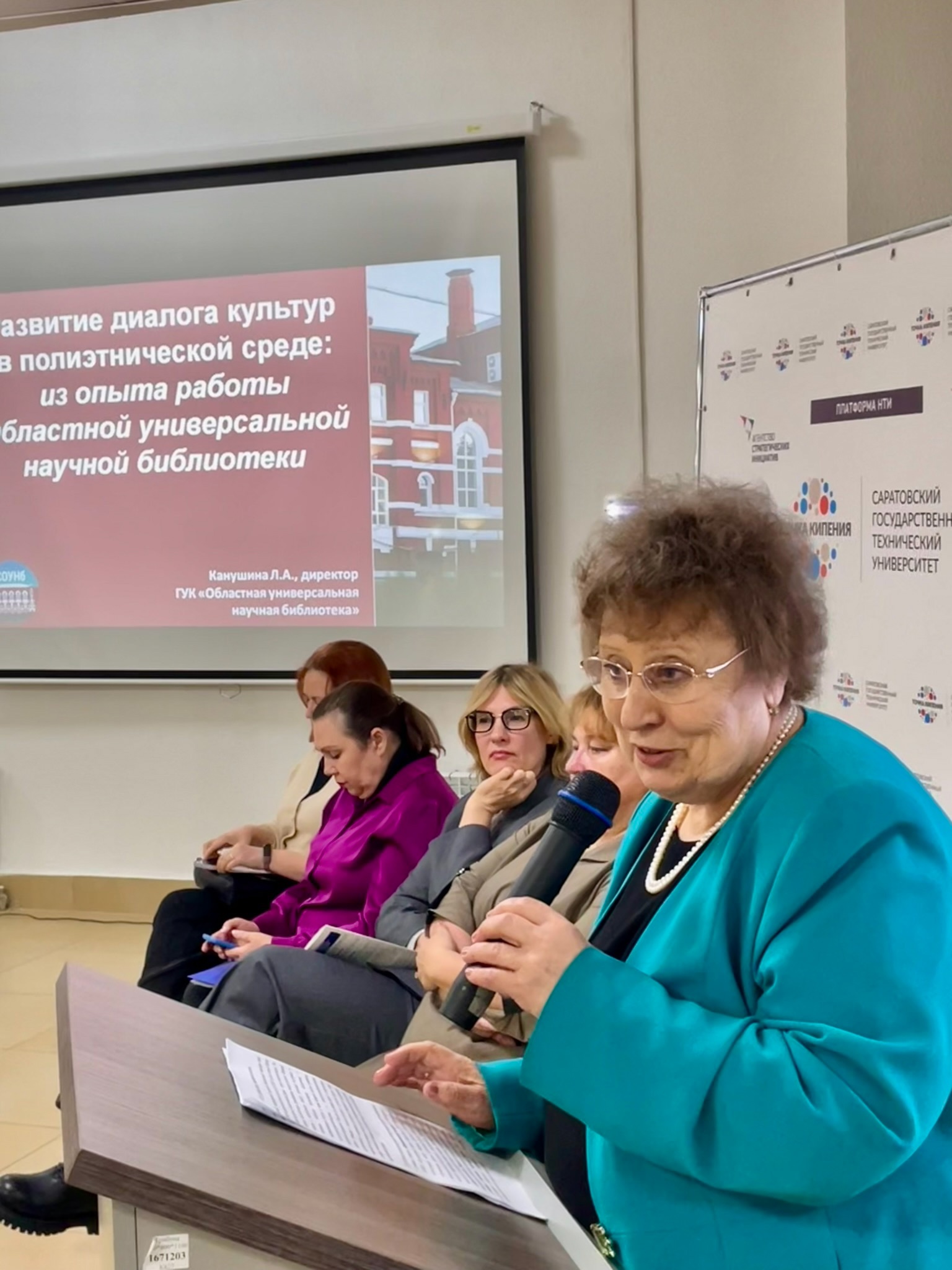 В первый день форума по инициативе кафедры «Переводоведение и межкультурная коммуникация» Института прикладных информационных технологий и коммуникаций состоялся круглый стол по русистике «Диалог культур и культура диалога», участниками которого стали представители научного и экспертного сообщества, руководители и преподаватели курсов русского языка как иностранного вузов г. Саратова, филологи, русисты, языковеды и лингвисты.