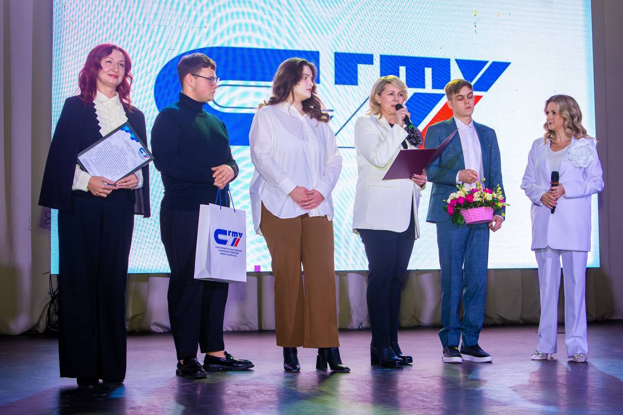Выпускники гимназии, студенты СГТУ Александр Попов, Ева Бехер и Илья Данилов поблагодарили учителей-наставников, пожелали им новых профессиональных достижений и воплощения в жизнь намеченных планов.