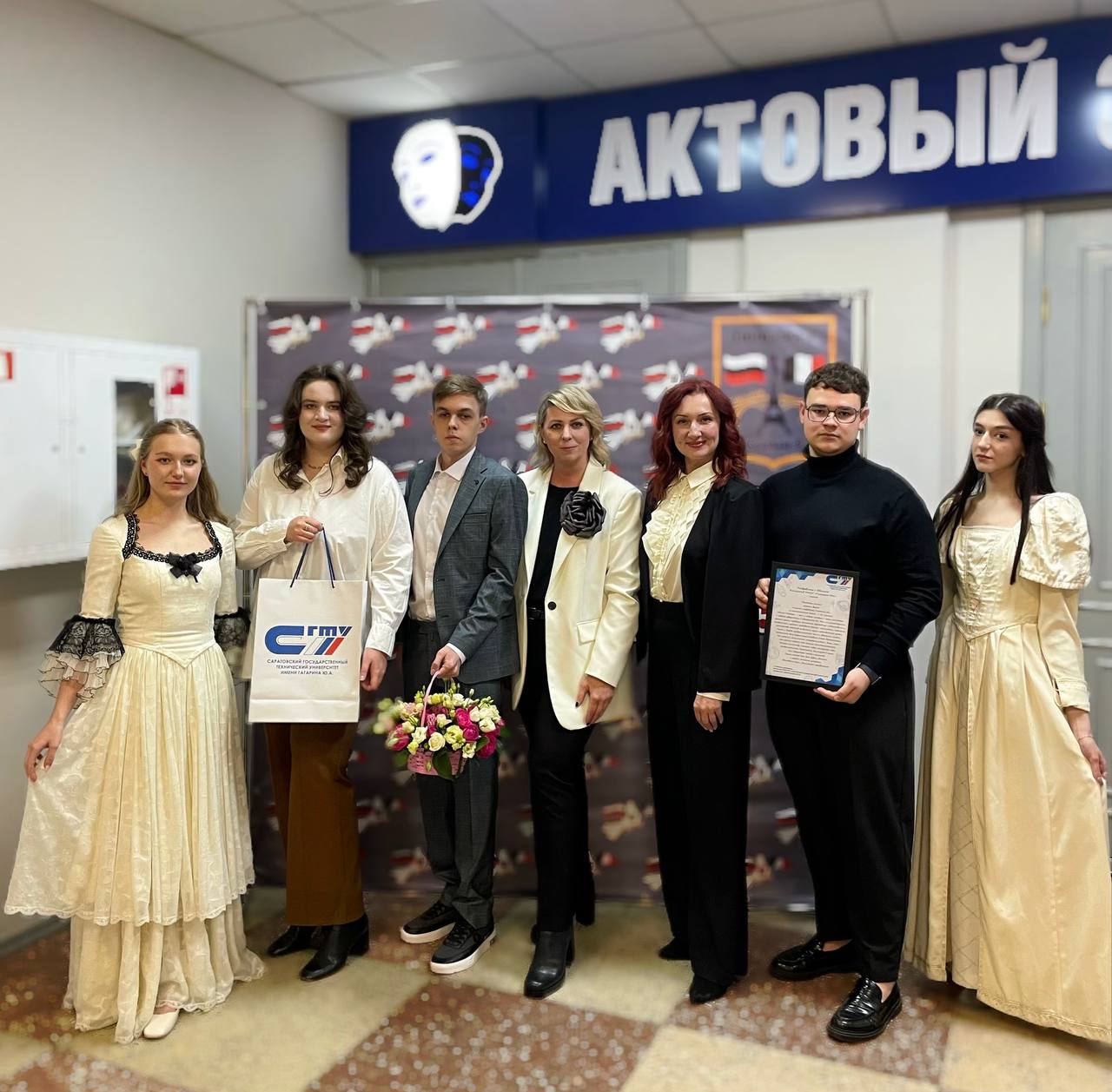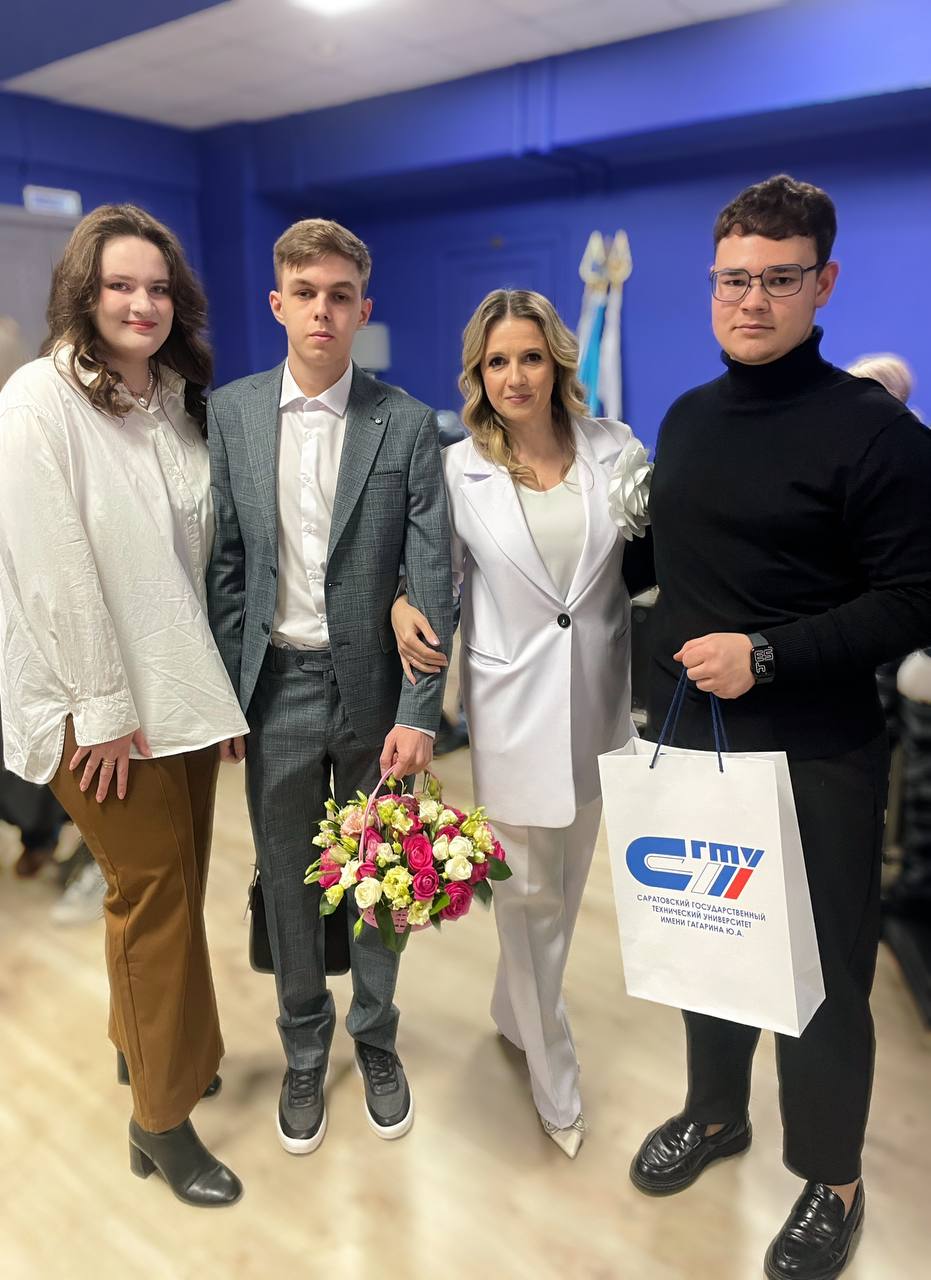 Выпускники гимназии, студенты СГТУ Александр Попов, Ева Бехер и Илья Данилов поблагодарили учителей-наставников, пожелали им новых профессиональных достижений и воплощения в жизнь намеченных планов.
