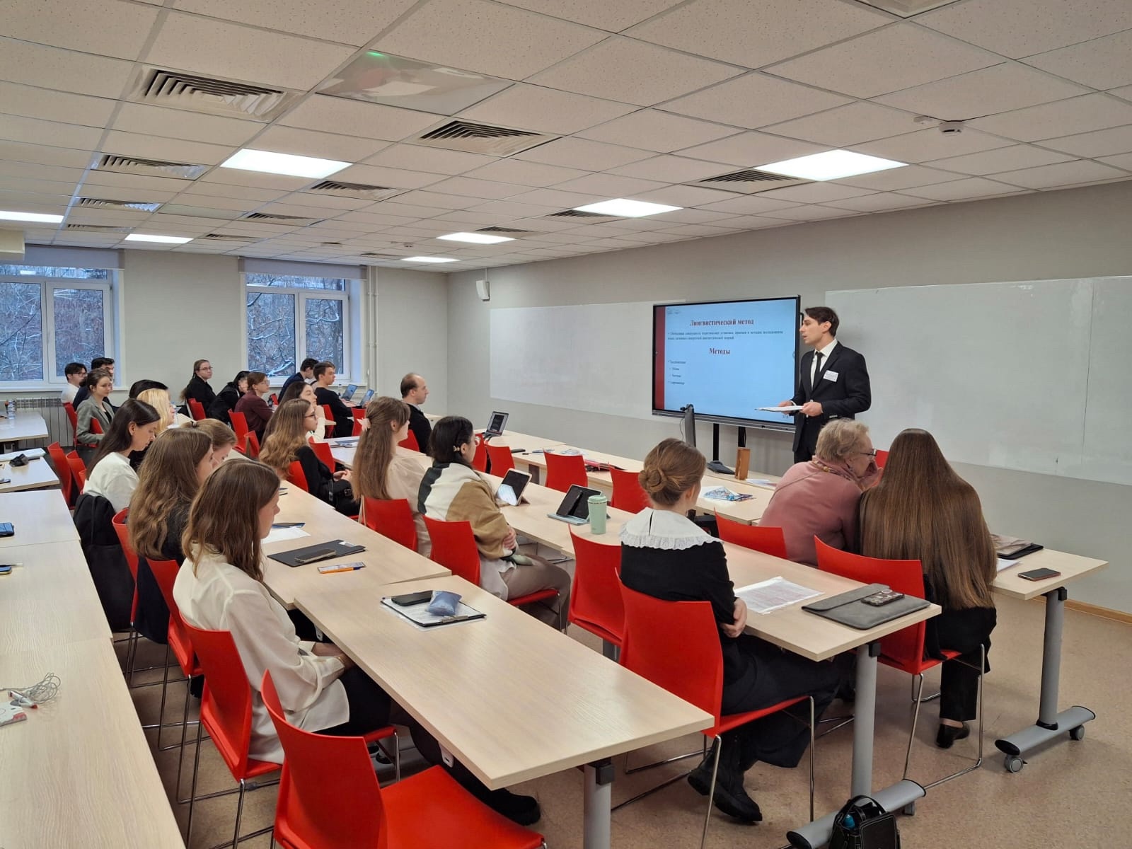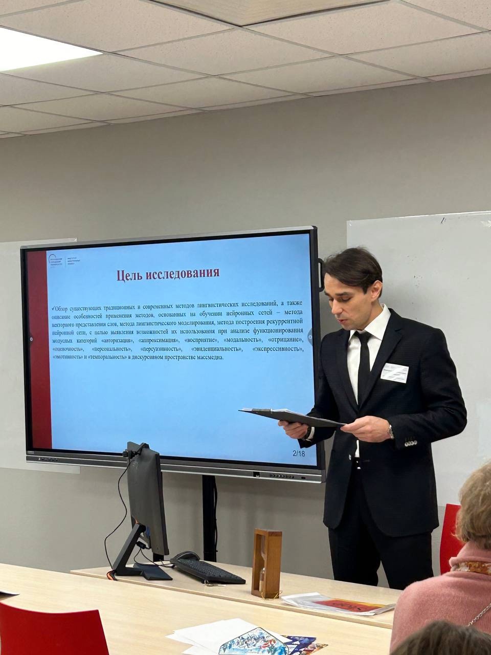 В своем докладе Дмитрий Валентинович подробно описал особенности и специфику современных методов лингвистических исследований. Такие методы используют принципы работы нейронных сетей: анализ больших данных, построение модели, обучение, нахождение оптимального решения и т.д.