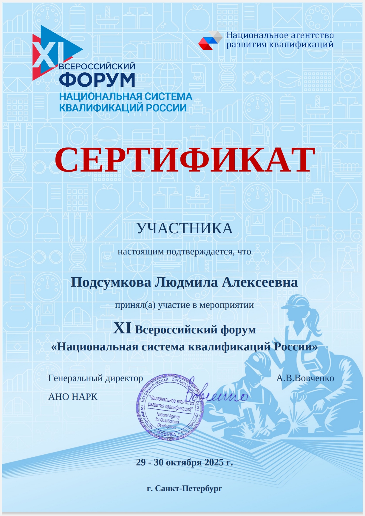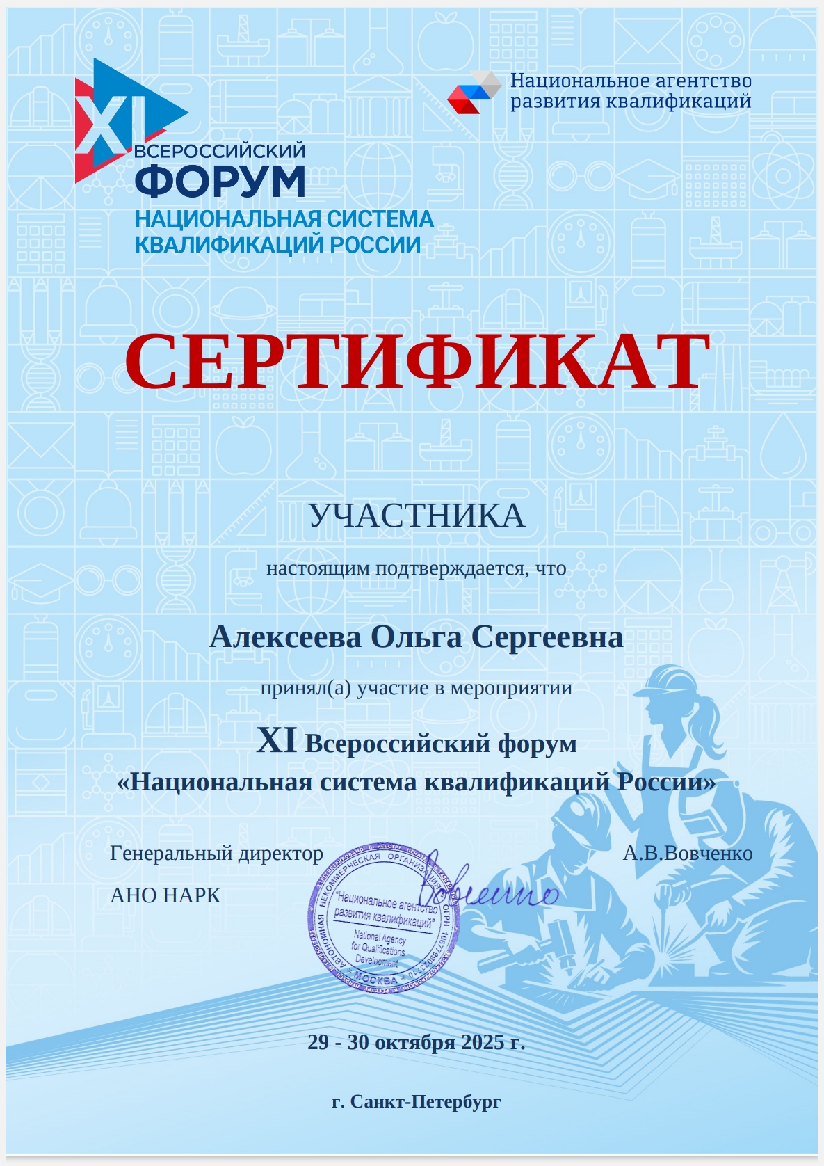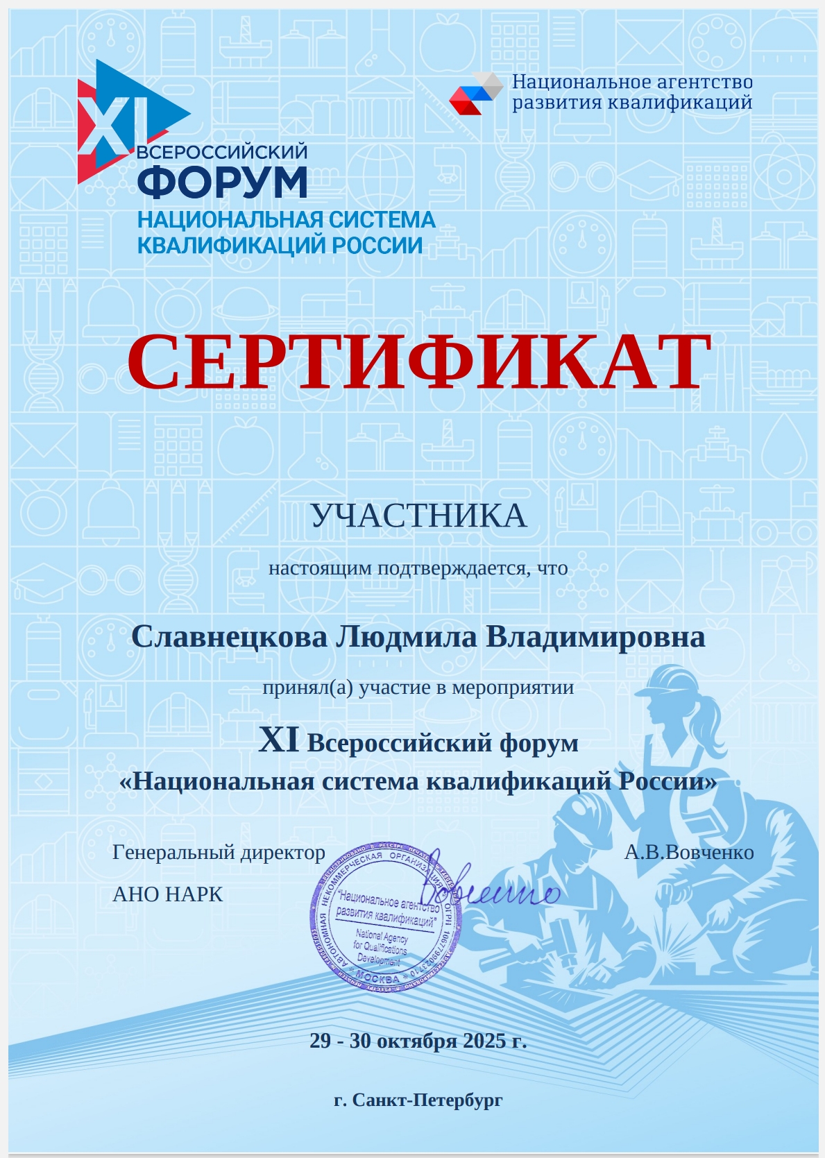 Организаторами мероприятия выступили Национальный совет при Президенте Российской Федерации по профессиональным квалификациям, Министерство труда и социальной защиты Российской Федерации, а также Национальное агентство развития квалификаций.