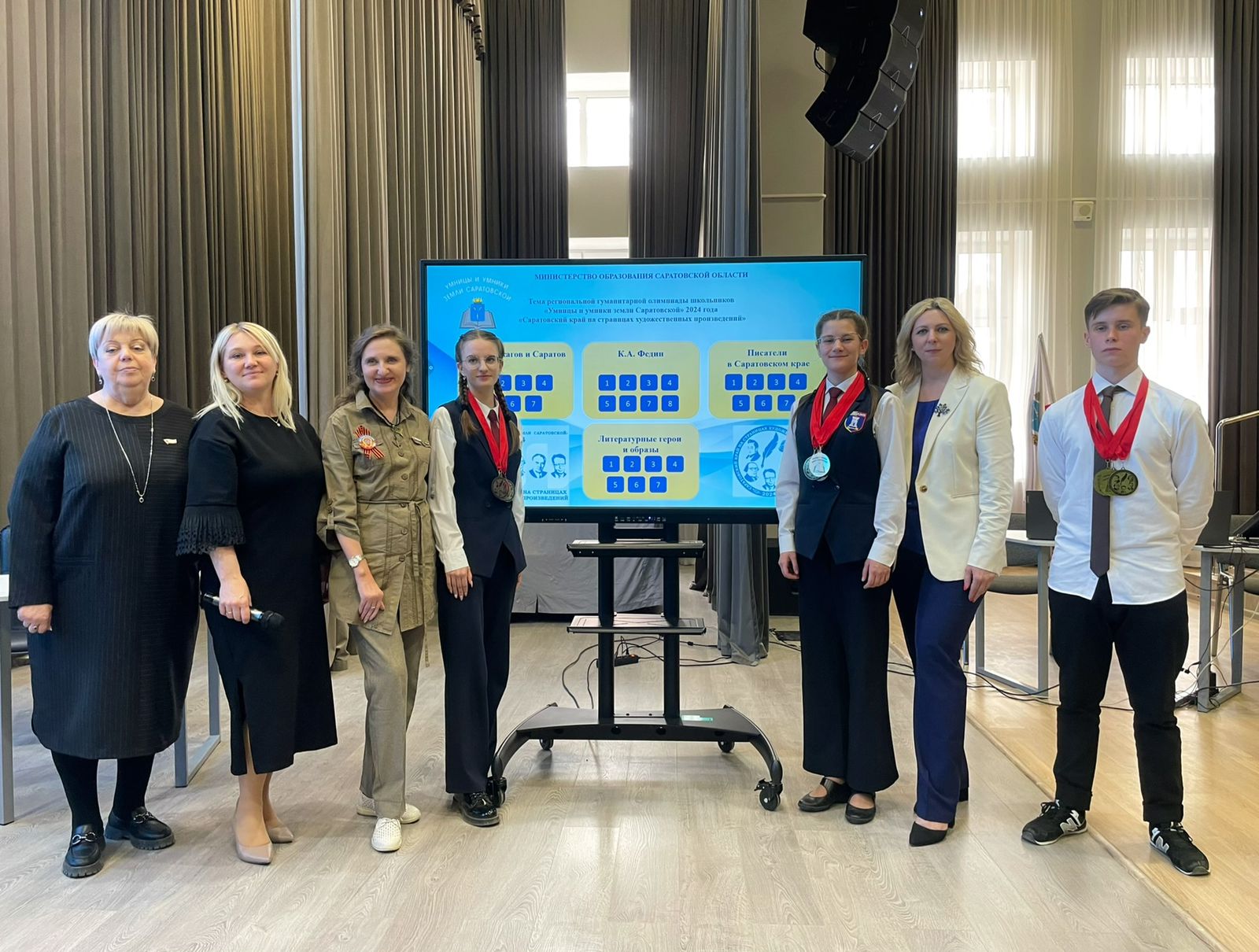 Агонисты и теоретики активно отвечали на вопросы о Чернышевском и Федине, Лермонтове и Гоголе, Костомарове и Кассиле, Булгакове и Кековой, которые рассказывали о Саратовском крае на страницах своих художественных произведений. За правильные и полные ответы десятиклассникам вручали тематические медали и ордены, подготовленные организаторами олимпиады – министерством образования Саратовской области и Национальной Родительской Ассоциацией.