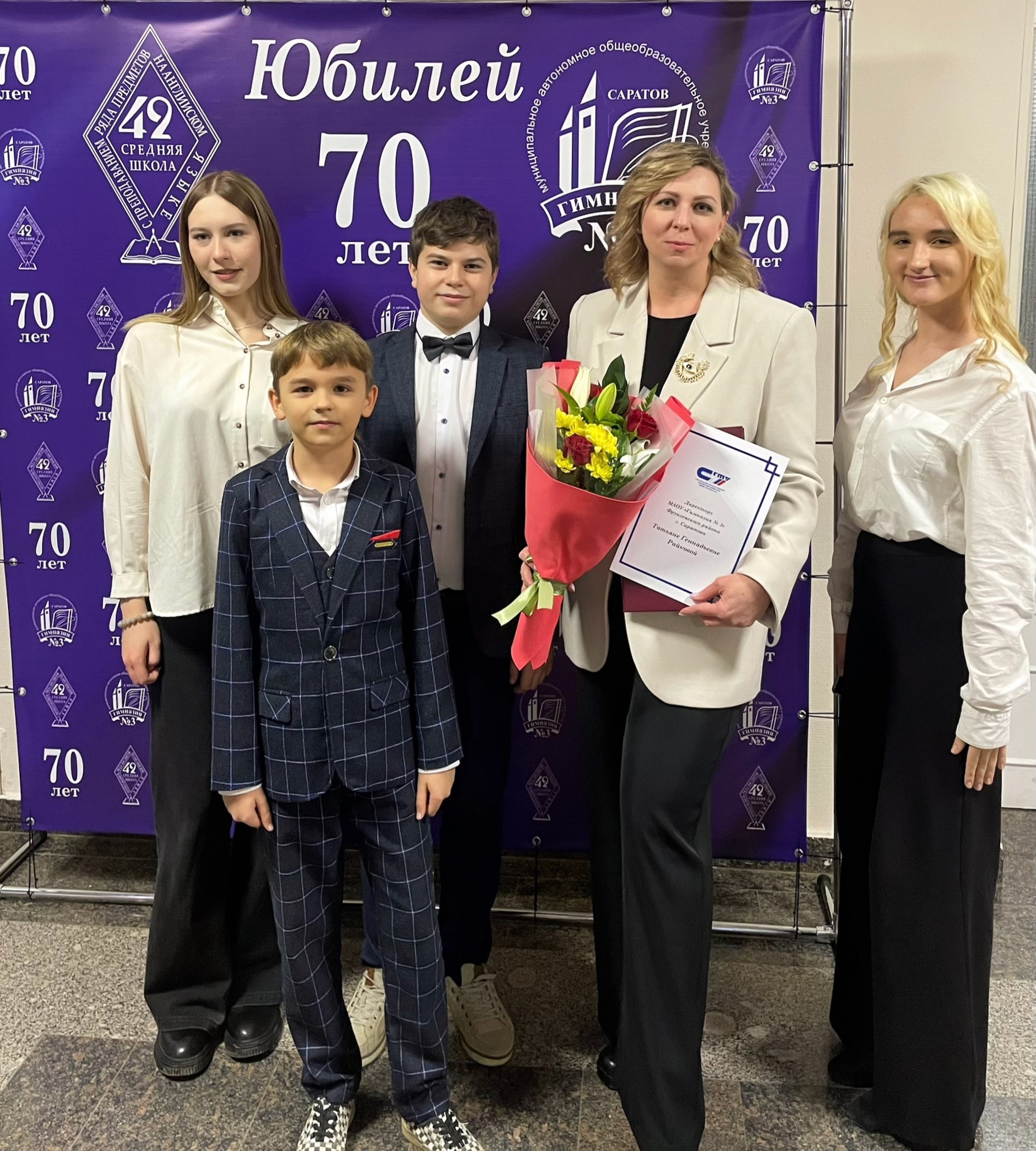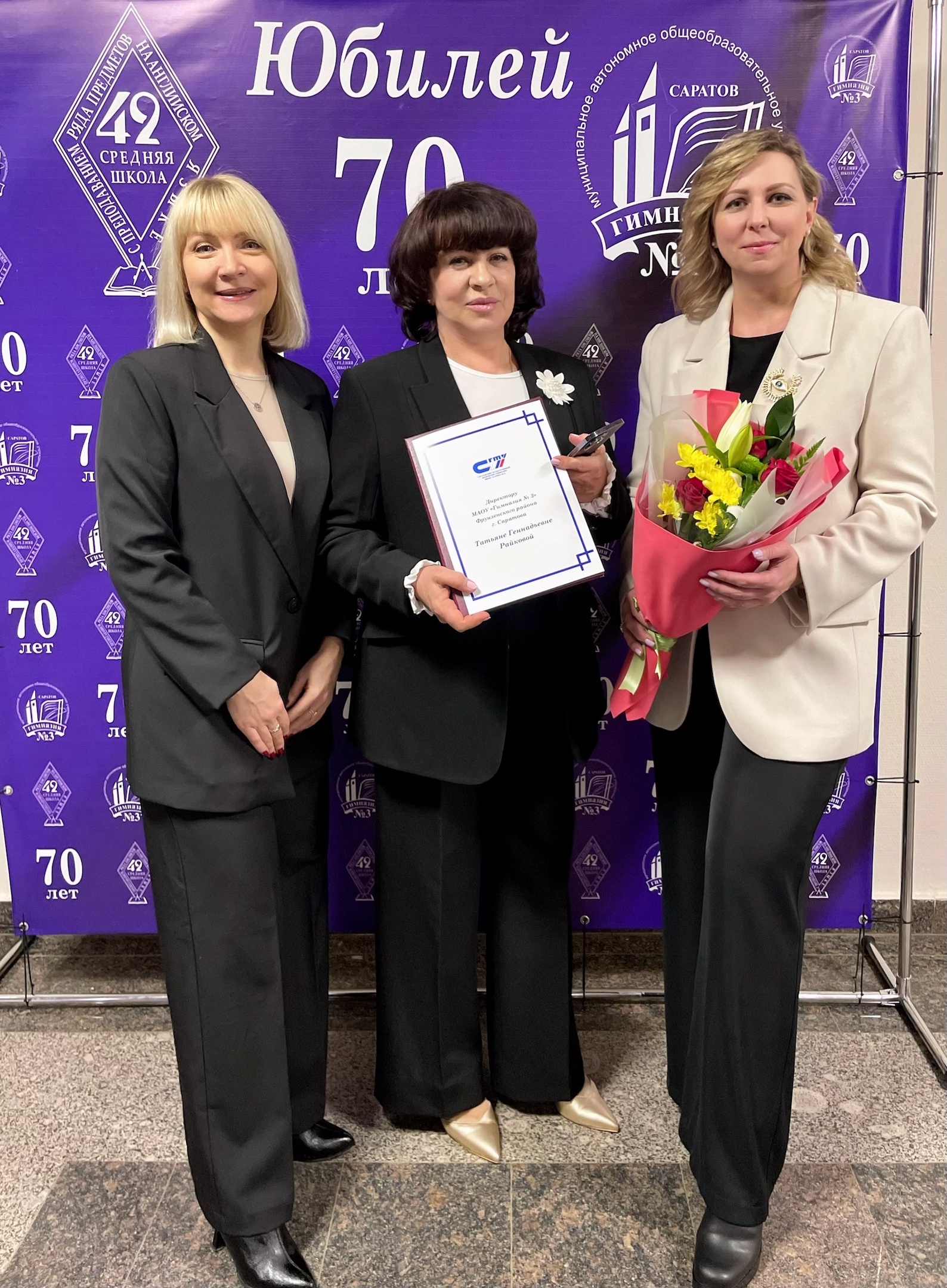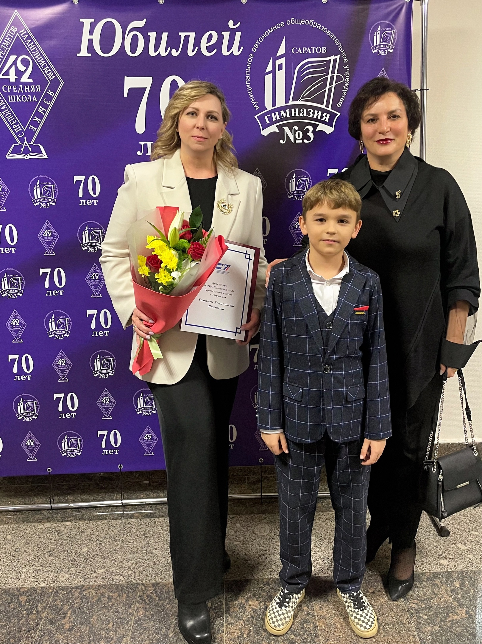 Состоялось торжественное мероприятие, посвященное празднованию 70-летия МАОУ «Гимназия №3» города Саратова, ранее известной как школа №42 (с углубленным изучением английского языка). В рамках мероприятия заведующая кафедрой «Переводоведение и межкультурная коммуникация» Института прикладных информационных технологий и коммуникаций СГТУ имени Гагарина Ю.А. Елена Овчинникова передала директору гимназии, почетному работнику общего образования РФ, Татьяне Райковой поздравительный адрес от ректора СГТУ, профессора Сергея Наумова. В тексте поздравления была выражена благодарность всему педагогическому коллективу гимназии за преданность своему делу, любовь к ученикам, новаторский подход и сохранение школьных языковых традиций.