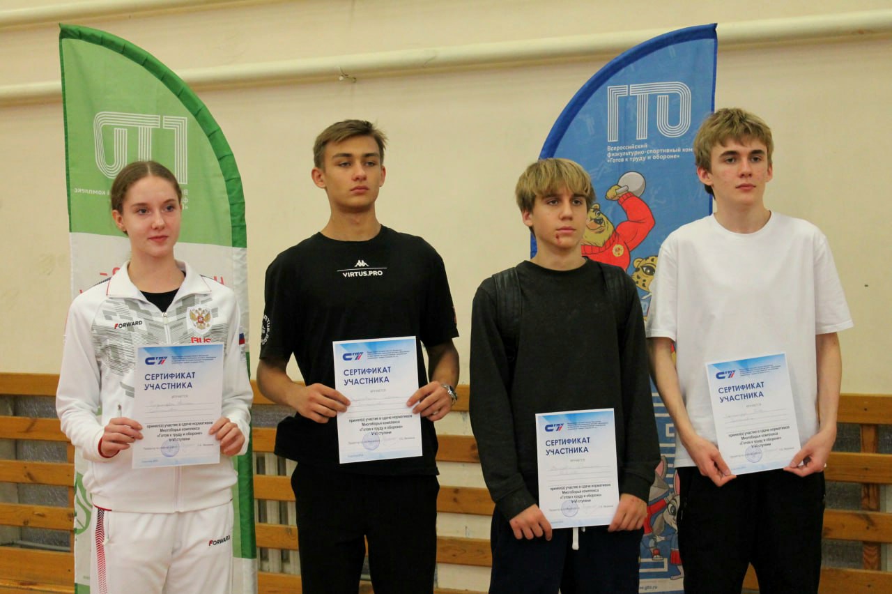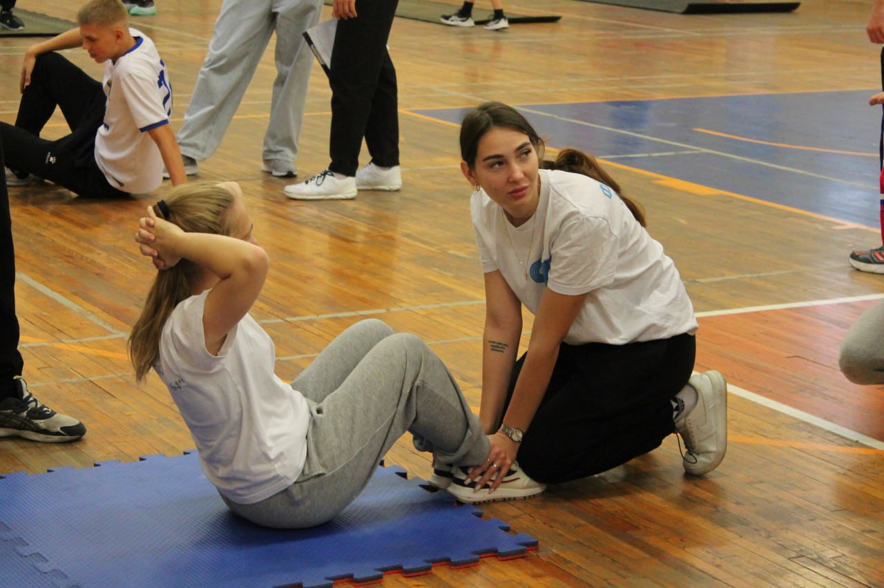В спортивном зале СГТУ имени Гагарина Ю.А. совместно с физкультурно-спортивным центром «Урожай» школьники сдали нормативы многоборья ГТО.