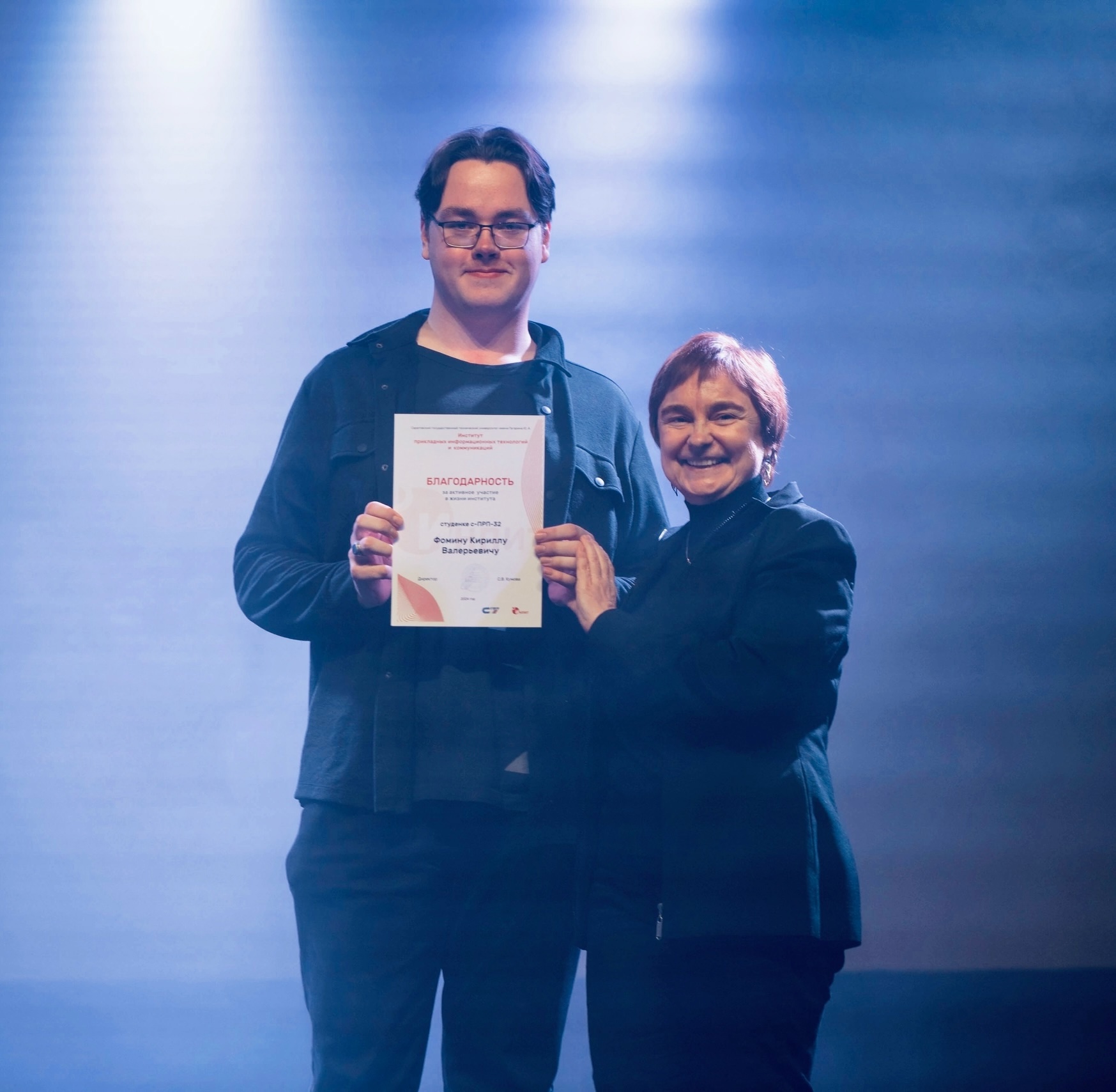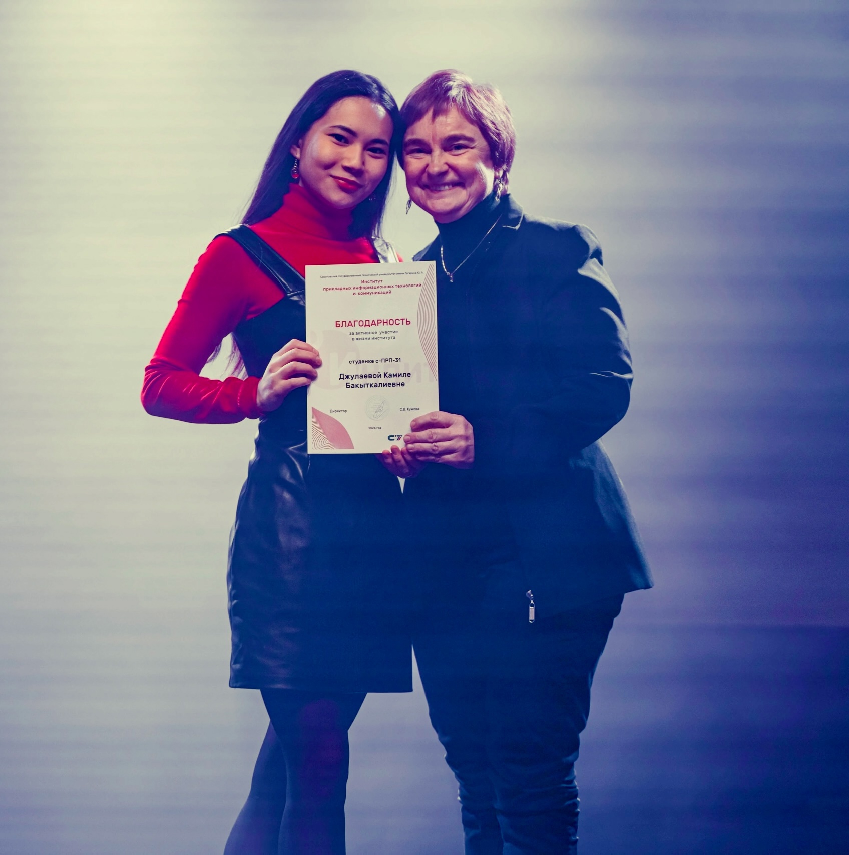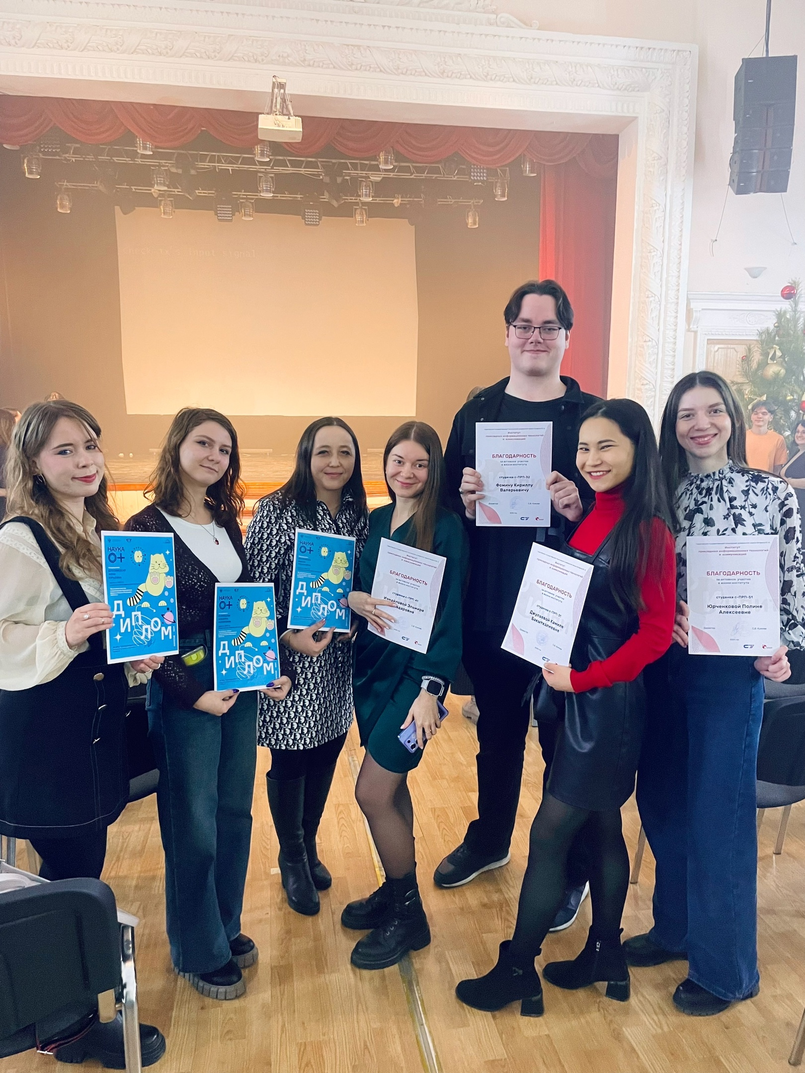 На праздничном предновогоднем концерте руководство ИнПИТ отметило студентов кафедры «Переводоведение и межкультурная коммуникация», вручив им благодарственные письма и дипломы победителей и участников конкурсов, олимпиад и других научных и учебных мероприятий.