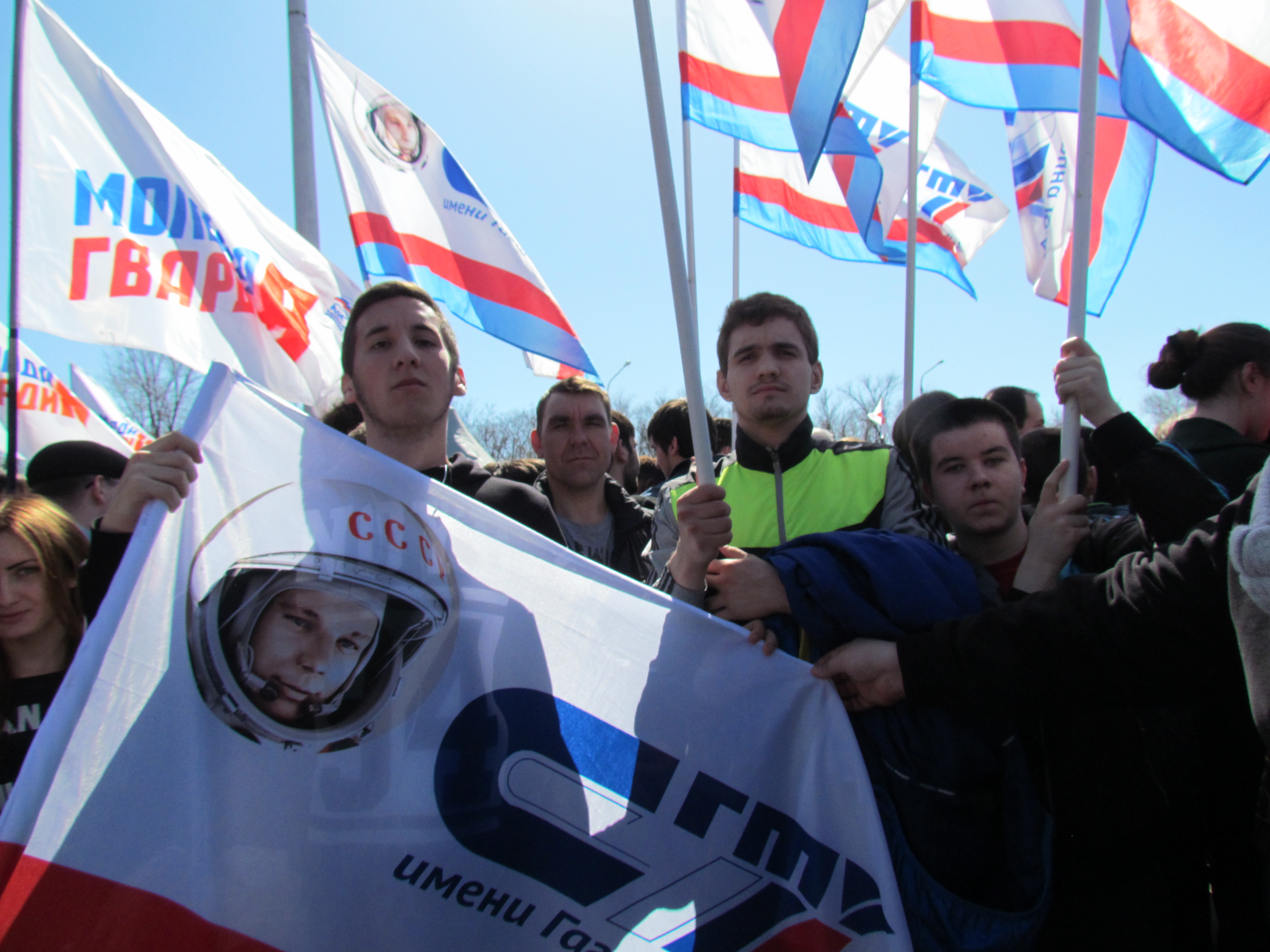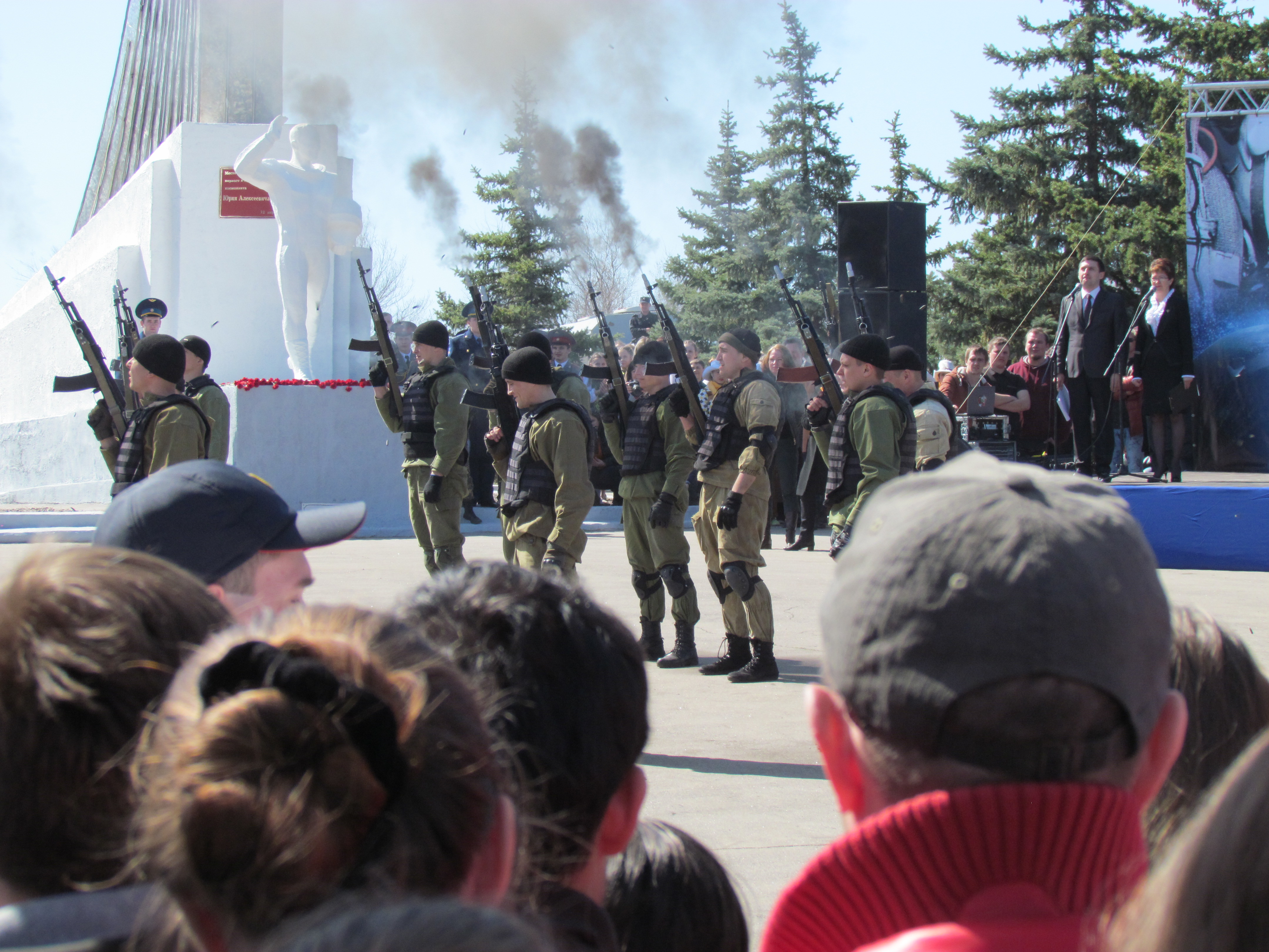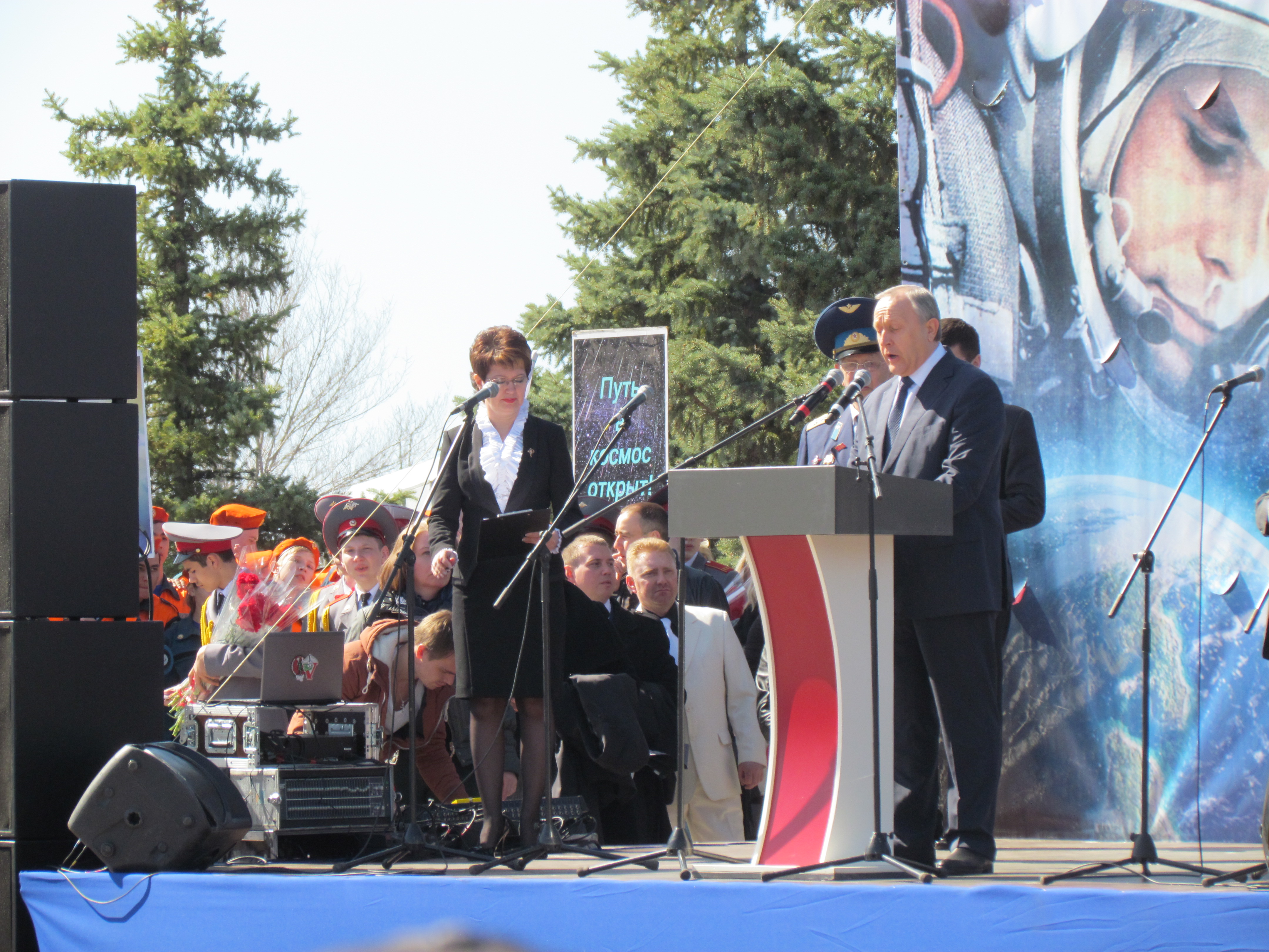 САДи. На месте приземления была организована программа в честь праздновая Дня космонавтики. Праздничная программа началась с культурной программы около обелиска с космической ракетой и памятником Ю.А. Гагарину. В нем приняли участие творческие коллективы Саратова, также прошли показательные выступления бойцов саратовского ОМОНа. Так же присутствующие услышали вступительное слово губернатора В.В. Радаева и почетных гостей - однокашника Юрия Гагарина, члена Российской академии космонавтики имени Циолковского и Академии военно-исторических наук В.С. Порохни, космонавта-испытателя Московского института медико-биологических проблем С.И. Нефедова, члена географического общества А.В. Токарева. Студенты Саратова поддержали выступавших флагами и транспарантами ВУЗов и молодежных организаций. В завершении программы прошли прыжки парашютистов и демонстрация мототехники. На обратной дороге студенты высказывали слова благодарности за организованный праздник.