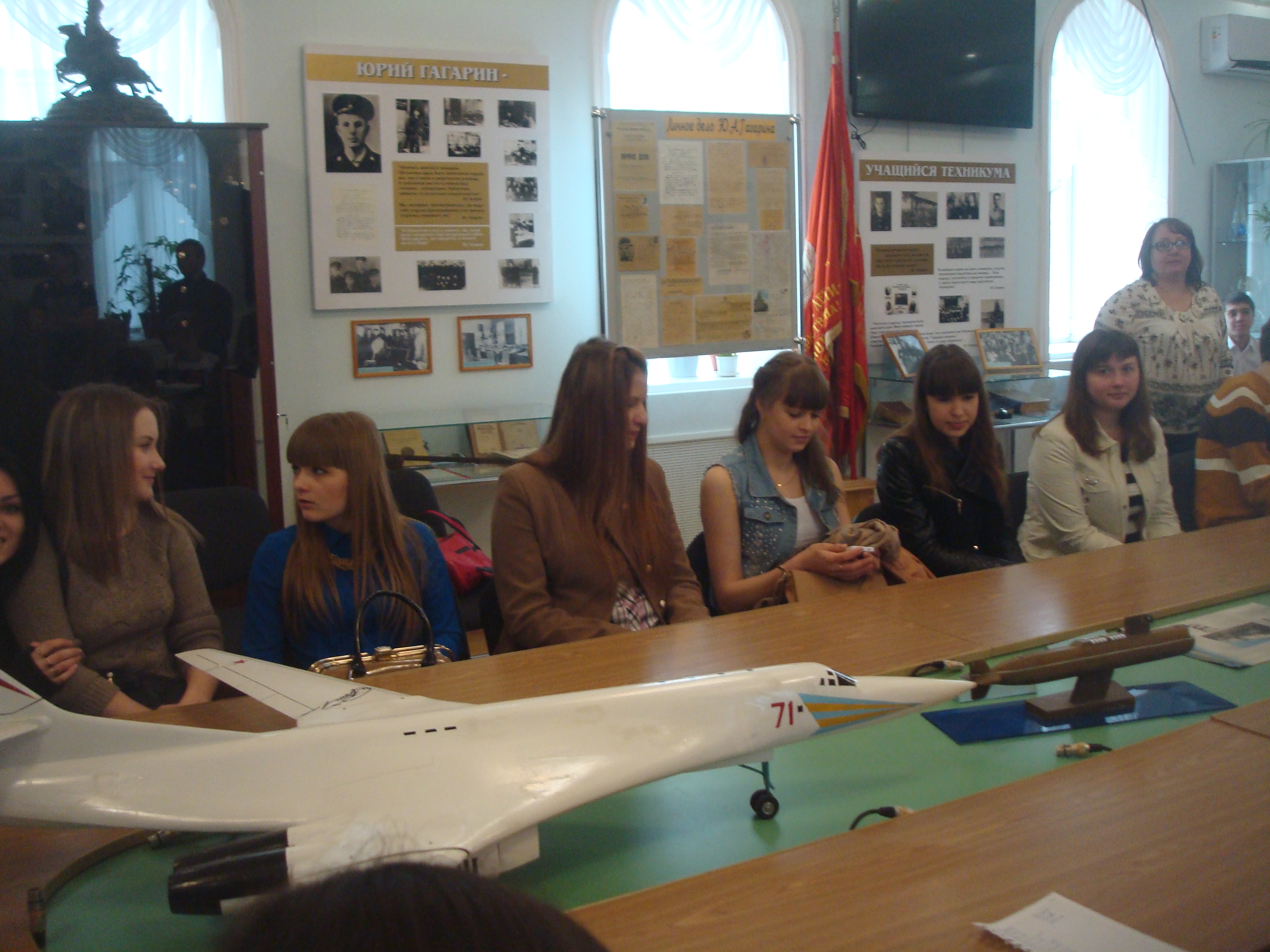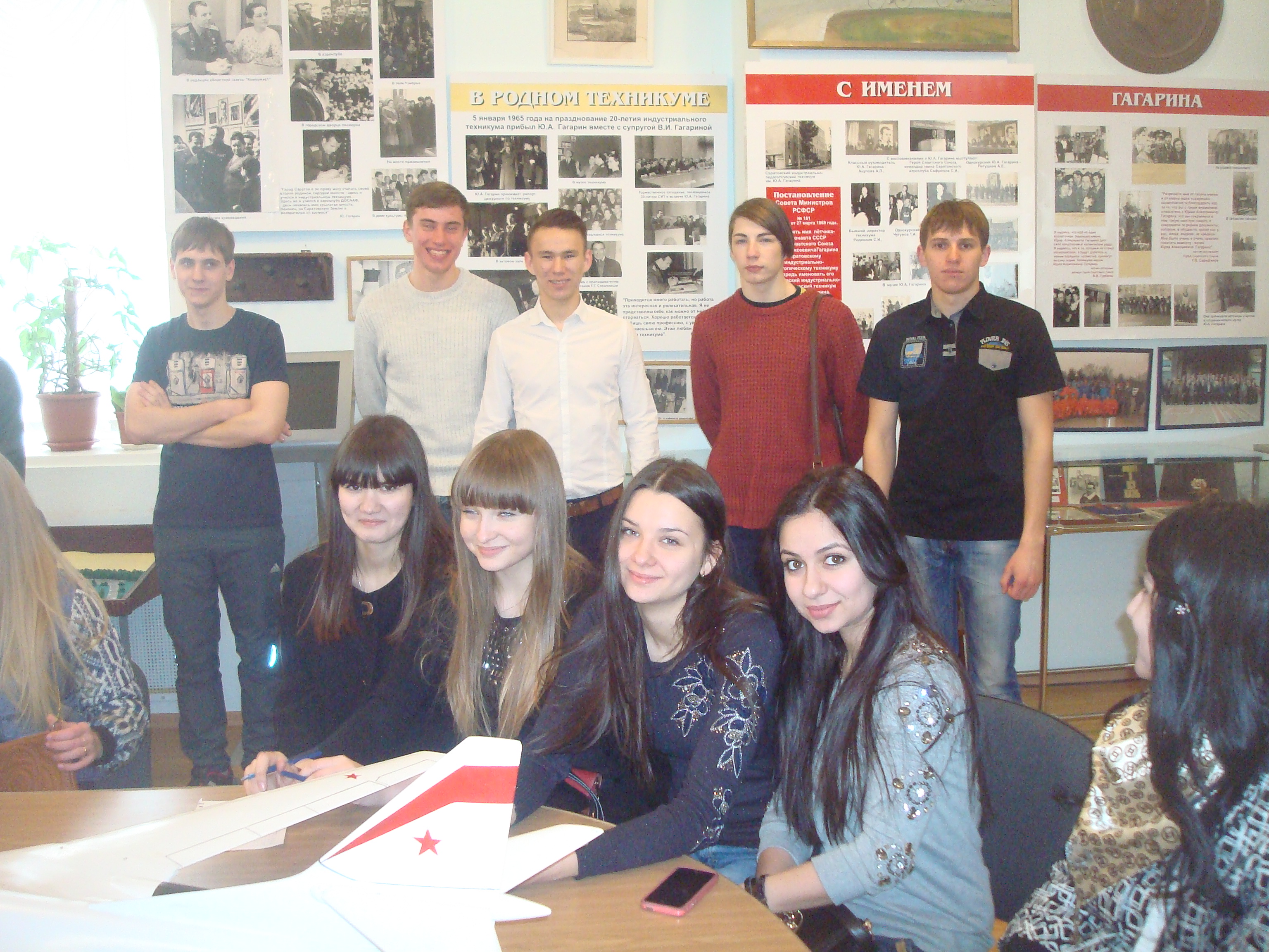 Студенты групп сЭБЗ-11 и сЭБЗ-13 с кураторами Бойковой О.С. и Оськиной Е.А. посетили Народный музей Ю.А. Гагарина при профессионально-педагогическом колледже Саратовского государственного технического университета имени Гагарина Ю.А., открытие которого стало своеобразным подарком первому космонавту планеты, когда он приехал в Саратов на празднование двадцатилетнего юбилея, тогда ещё Индустриального техникума. В то время это был первый и единственный музей в стране (да и во всем мире), посвященный Ю.А. Гагарину. Первокурсников очень заинтересовала экспозиция Музея, отражающая величие и простоту первого космонавта Вселенной, они с большим интересом слушали экскурсовода и задавали вопросы.