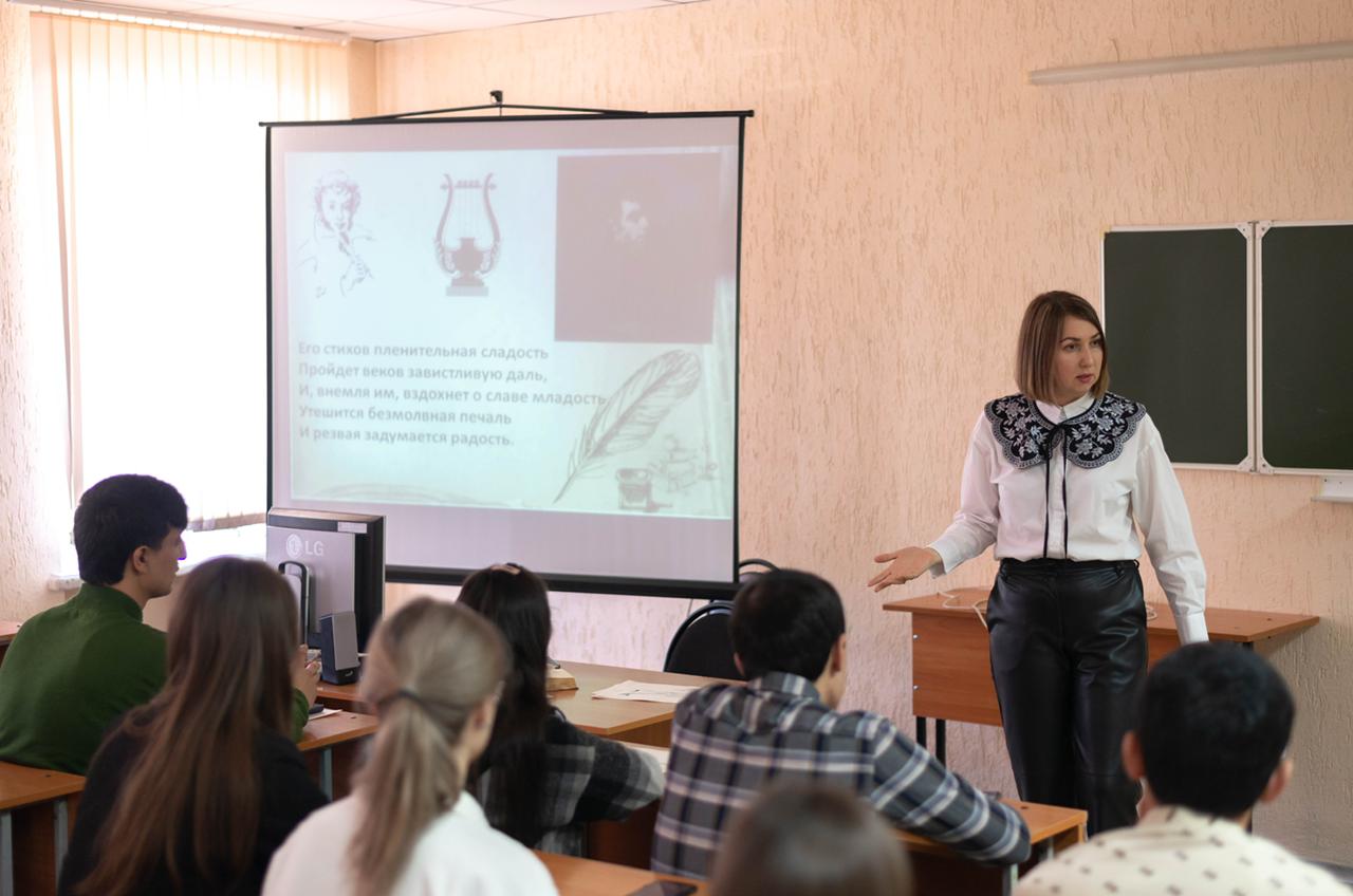 На встрече доцент кафедры Эльмира Тугушева провела мастер-класс по анализу поэтического текста, обратила внимание на то, как важно увидеть в предложенных для перевода стихотворных отрывках всю многогранность пушкинского гения.