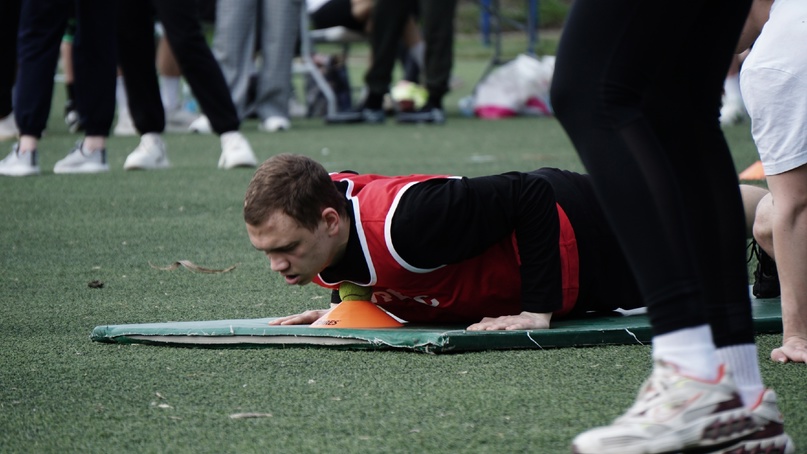 Команды институтов преодолевали испытания: прыжок в длину с места, отжимания, упражнение на пресс, рывок гири (юноши) и приседания с ней (девушки), гибкость и бег 30 метров.