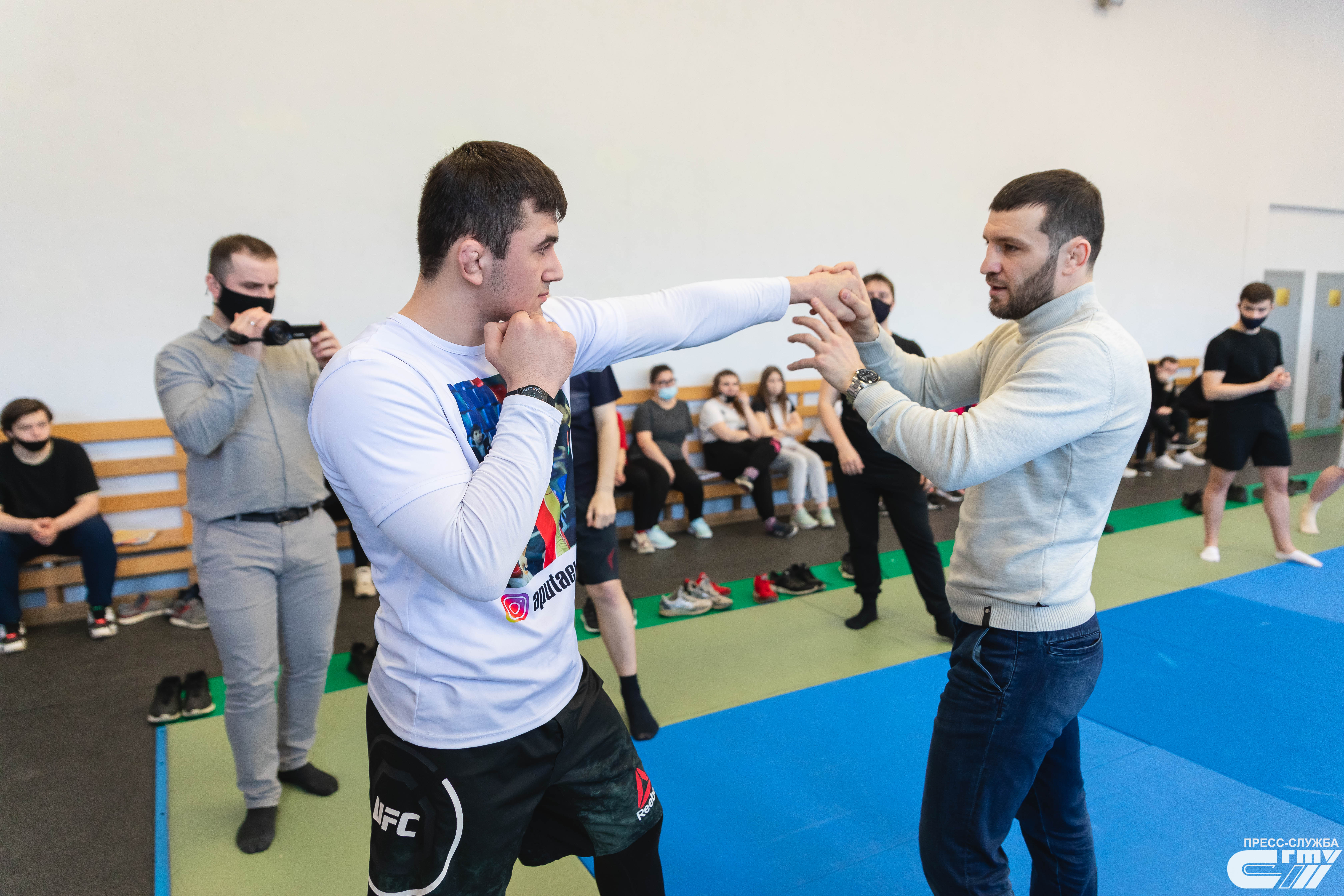 Студенты попытались выполнить предложенные чемпионом приемы, и попросили Даци Дациева приехать в университет повторно рассказать о своей карьере и спортивных успехах.
