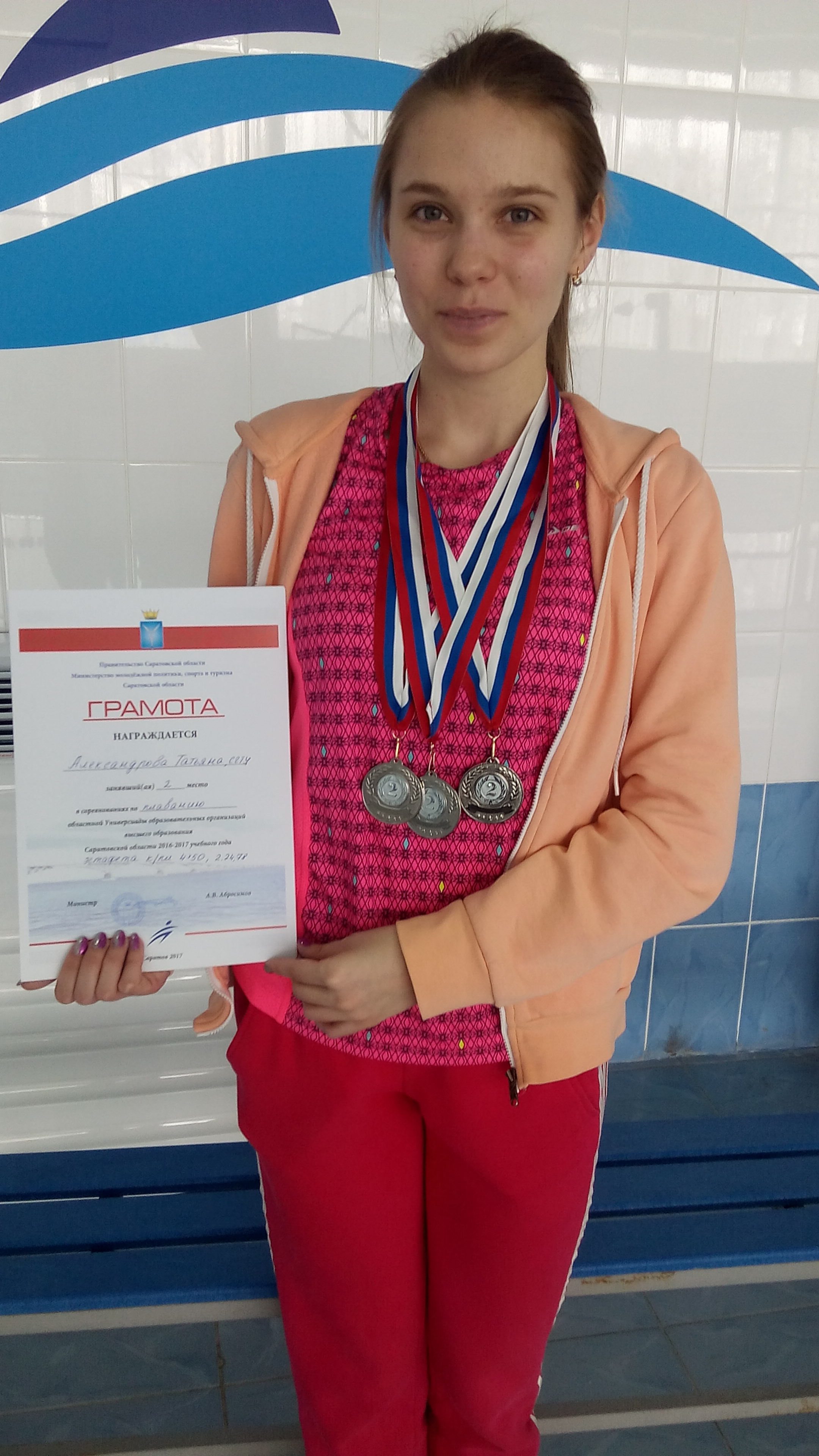 В эстафете 4х50 (комплексное плавание) женская команда СГТУ в составе: Бисеровой Анастасии, Александровой Татьяны, Калининой Юлии и Масевкиной Виктории - заняла 2 место.