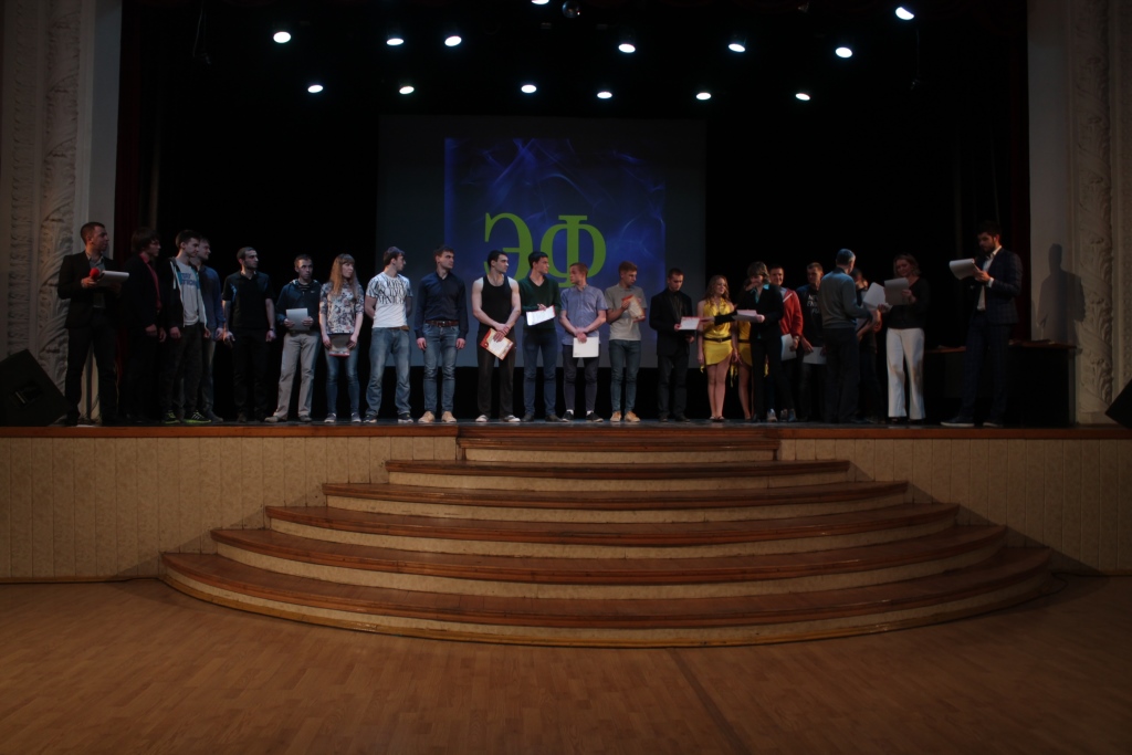 17 мая 2016 года в студенческом клубе СГТУ подвели итоги спортивного года. Как и всегда, это произошло в форме праздничного представления, в ходе которого были вручены награды, грамоты и благодарственные письма лучшим спортсменам нашего вуза. Новшество этого года состояло в том, что впервые наряду со студентами свои награды получили и преподаватели СГТУ, принимавшие участие в соревнованиях Спартакиады вузов Саратовской области. Руководители факультетов и институтов, студенты и представители кафедры ФЗС также смогли насладиться праздничной программой, в которой было много танцев, гимнастических и акробатических этюдов, музыки и песен.