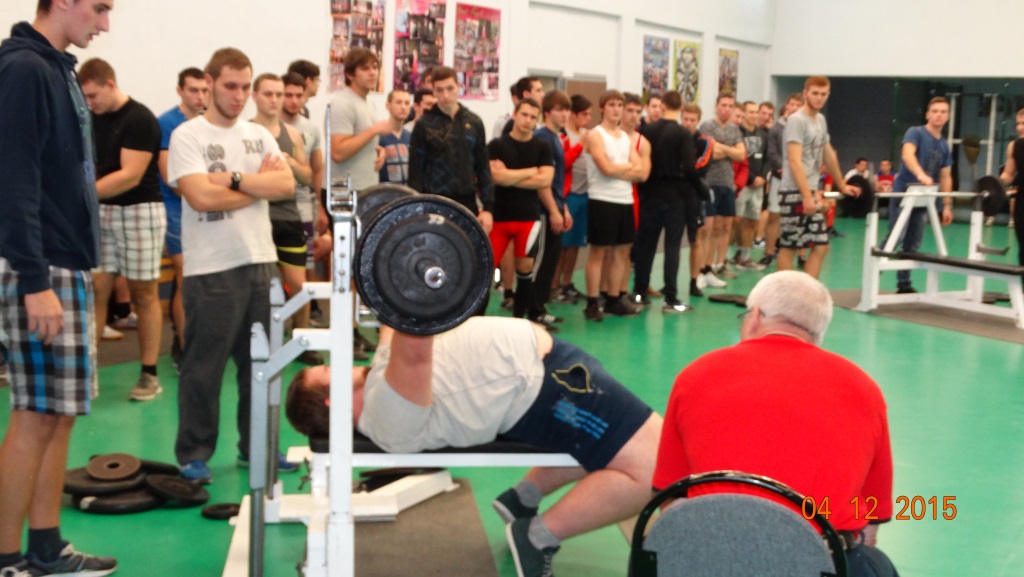 4 декабря 2015 года впервые в истории нашего вуза состоялась Спартакиада по жиму штанги лежа. Данный вид спорта появился около четверти века назад как составная часть пауэрлифтинга (силового троеборья) и является крайне популярным во всем мире. Вузовские соревнования собрали 90 участников - по 10 человек от 9 факультетов и институтов. Кроме того, в рамках показательной программы свое мастерство продемонстрировали 5 спортсменок, выступающих за сборную вуза по пауэрлифтингу.