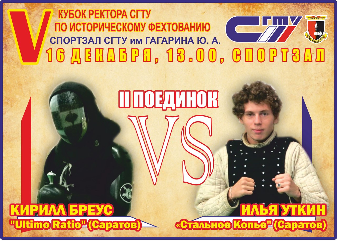 16 декабря 2016 года в СГТУ состоялся 5-й Кубок ректора по историческому фехтованию.