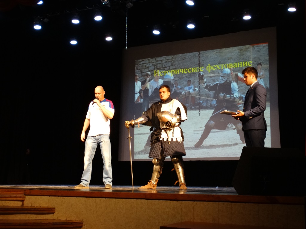 13 октября 2015 года в СГТУ состоялся спортивный праздник, посвященный началу спортивного учебного года. Как и всегда, его организатором выступила кафедра ФЗС, представители спортивных секций, преподаватели и студенты. В своем приветствии к собравшимся в Студенческом клубе первокурсникам зав. кафедрой ФЗС профессор Дмитрий Михель рассказал о ведущейся в вузе спортивной работе, успехах наших спортсменов и задачах, стоящих перед вузовским спортом. С приветственными словами выступили также известные студенты-спортсмены: Лилия Нигматулина (СГФ, 4 курс), чемпионка Азии 2015 г. по пауэрлифтингу, Андрей Андреев (ИНЭТМ, магистратура), на протяжении последних шести лет успешно выступавший за футбольную команду вуза, Алексей Иевлев (ФЭС, 1 курс), участник Чемпионата России по фехтованию. С оригинальными спортивно-танцевальными номерами выступили представители коллектива Фит-Микс (руководитель Жанна Синицына), представители секций черлидинга, ритмической гимнастики, фехтовальщики, боксеры, мастера гиревого спорта. С пожеланиями спортивных успехов к студенчеству обратились наши ветераны-спорта - доценты кафедры ФЗС Ольга Филимонова (Чемпионка мира по самбо), Евгений Ломтев (Чемпион и рекордсмен Европы по спринтерскому бегу), Сергей Уткин (основатель исторического фехтования в России). Спортивный праздник, сопровождавшийся оригинальными видео-презентациями и музыкальными номерами, - это открытое приглашение к студенчеству СГТУ найти в своей жизни место для спорта.