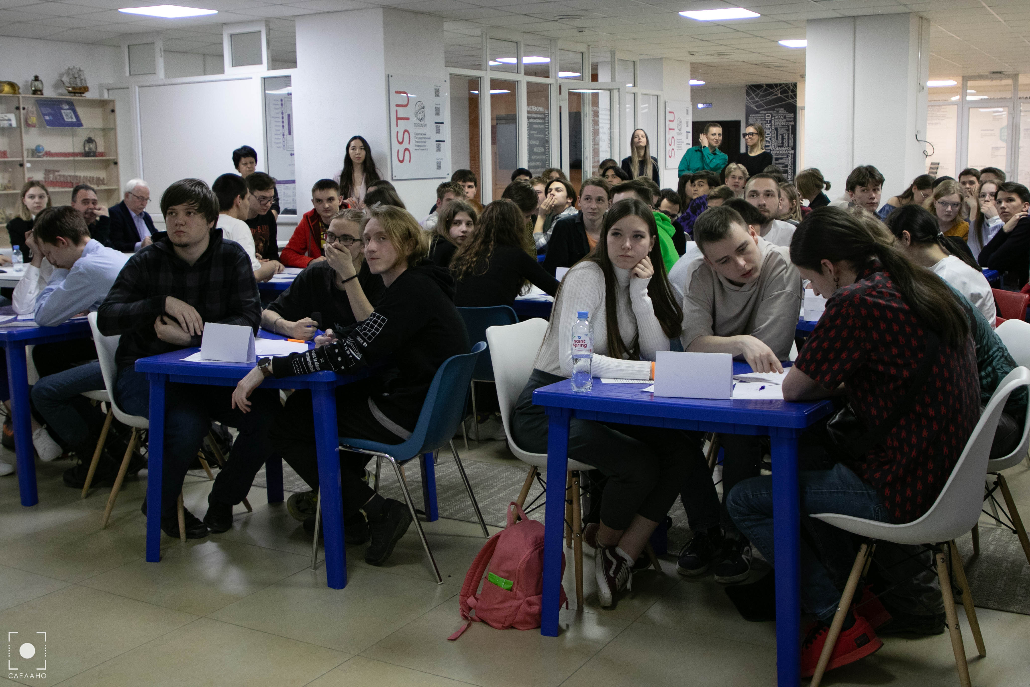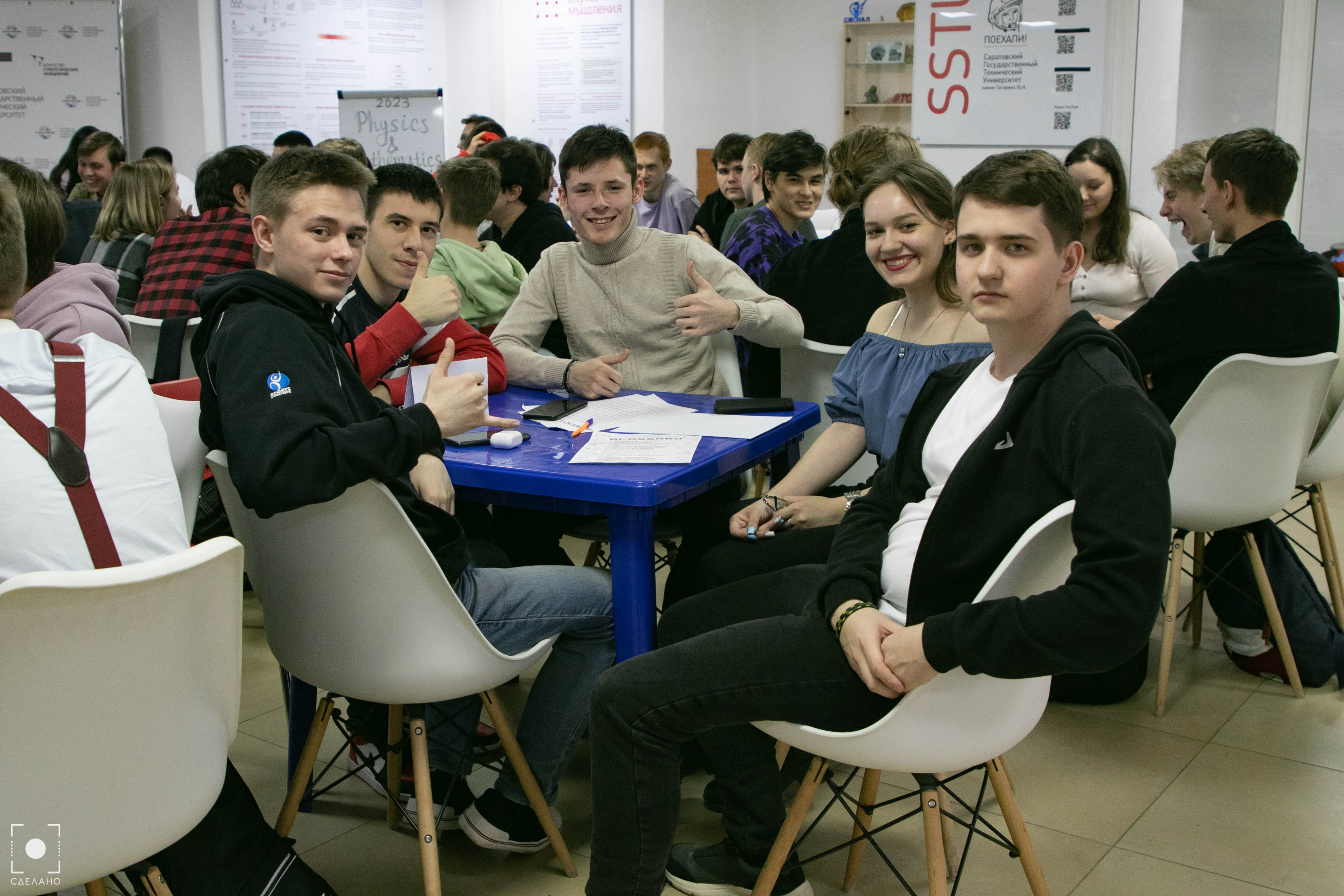 Мероприятие прошло на базе «Точки кипения» СГТУ в формате интеллектуальной командной викторины и состояла из трех раундов. Среди тех, кто пожелал проверить свои знания в области физики, математики и английского языка, собрались студенты Института машиностроения, материаловедения и транспорта, Института электронной техники и приборостроения, Института энергетики, ФТИ и СЭИ – всего 80 человек (16 команд по 5 студентов).