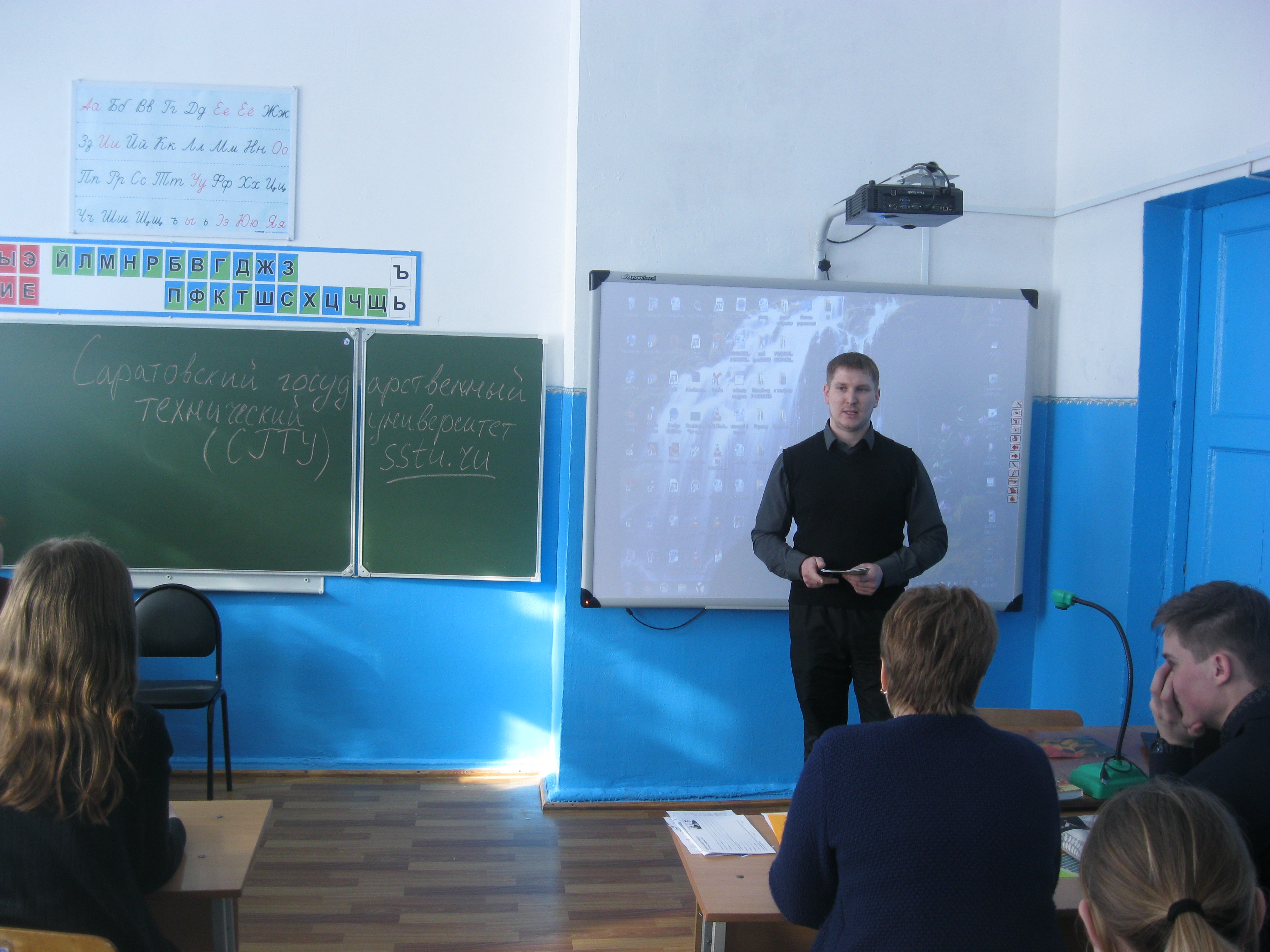 В рамках программы профориентационной работы прошла встреча представителей институтов СГТУ имени Гагарина Ю.А. с выпускниками школ г. Аркадака. Встреча прошла на базе МОУ «СОШ №2». Кафедру ЭКЛ на этой встрече представил доцент Антон Косарев. Он рассказал о возможности получения образования в рамках востребованных в настоящее время направлений «Экология и природопользование» и «Природообустройство и водопользование», о перспективах трудоустройства, об условиях поступления, программах обучения, условиях проживания студентов, практиках и стажировках, проводимых на кафедре ЭКЛ, возможностях для творческой самореализации. Школьники и их родители получили рекламно-информационные материалы кафедры и задали интерсующие их вопросы о поступлении.