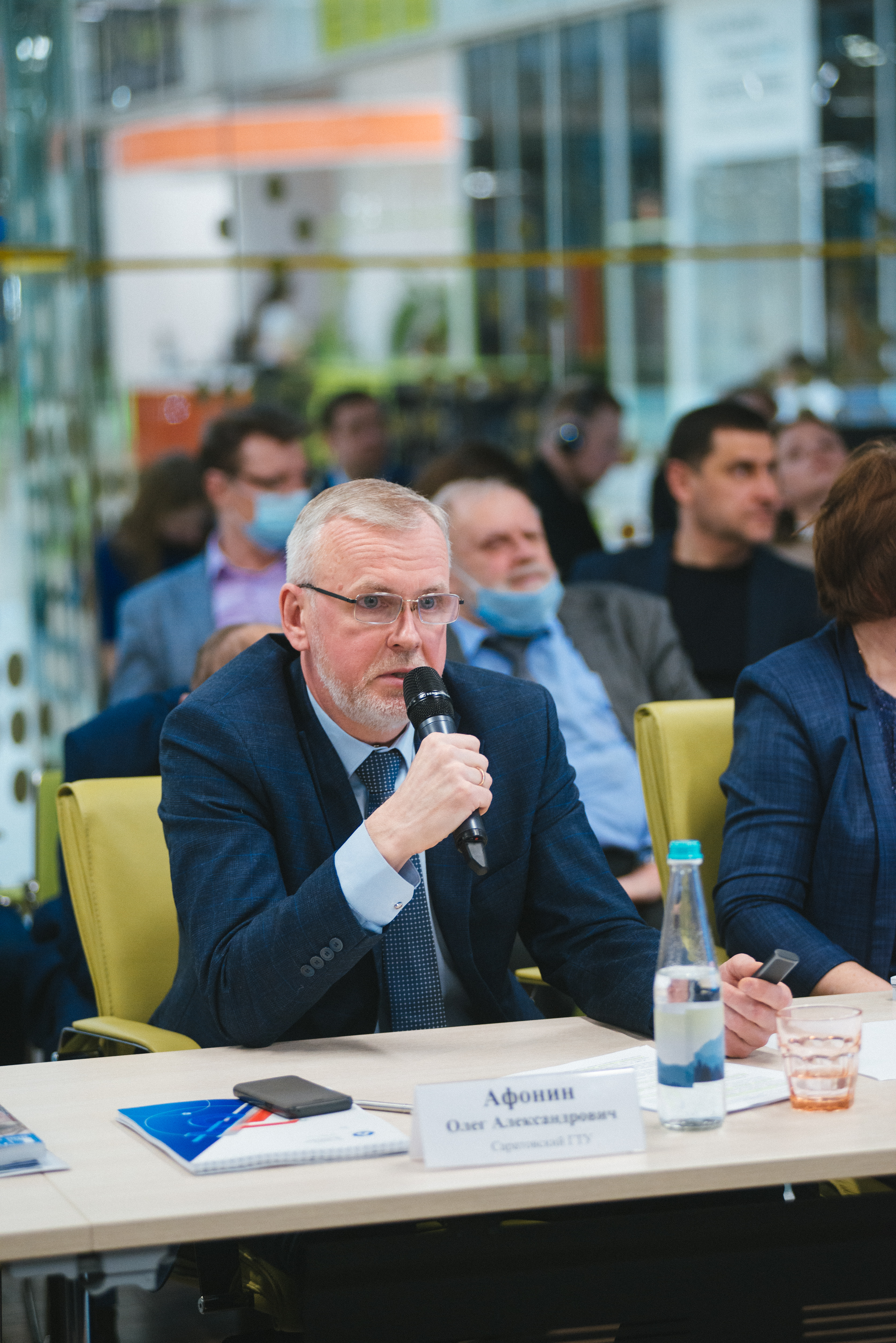 Олег Афонин, ректор СГТУ имени Гагарина Ю. А., в своем выступлении рассказал об участии вуза в формировании кадрового потенциала для реализации задач федеральных проектов в рамках Национального проекта «Экология». Он особо отметил достижения научных коллективов университета по направлениям «химическая технология» и «экологическая безопасность», потенциал предлагаемых к реализации проектов в рамках КНТП и их роль для развития новой отрасли. Выступление вызвало большой интерес и оживленную дискуссию.