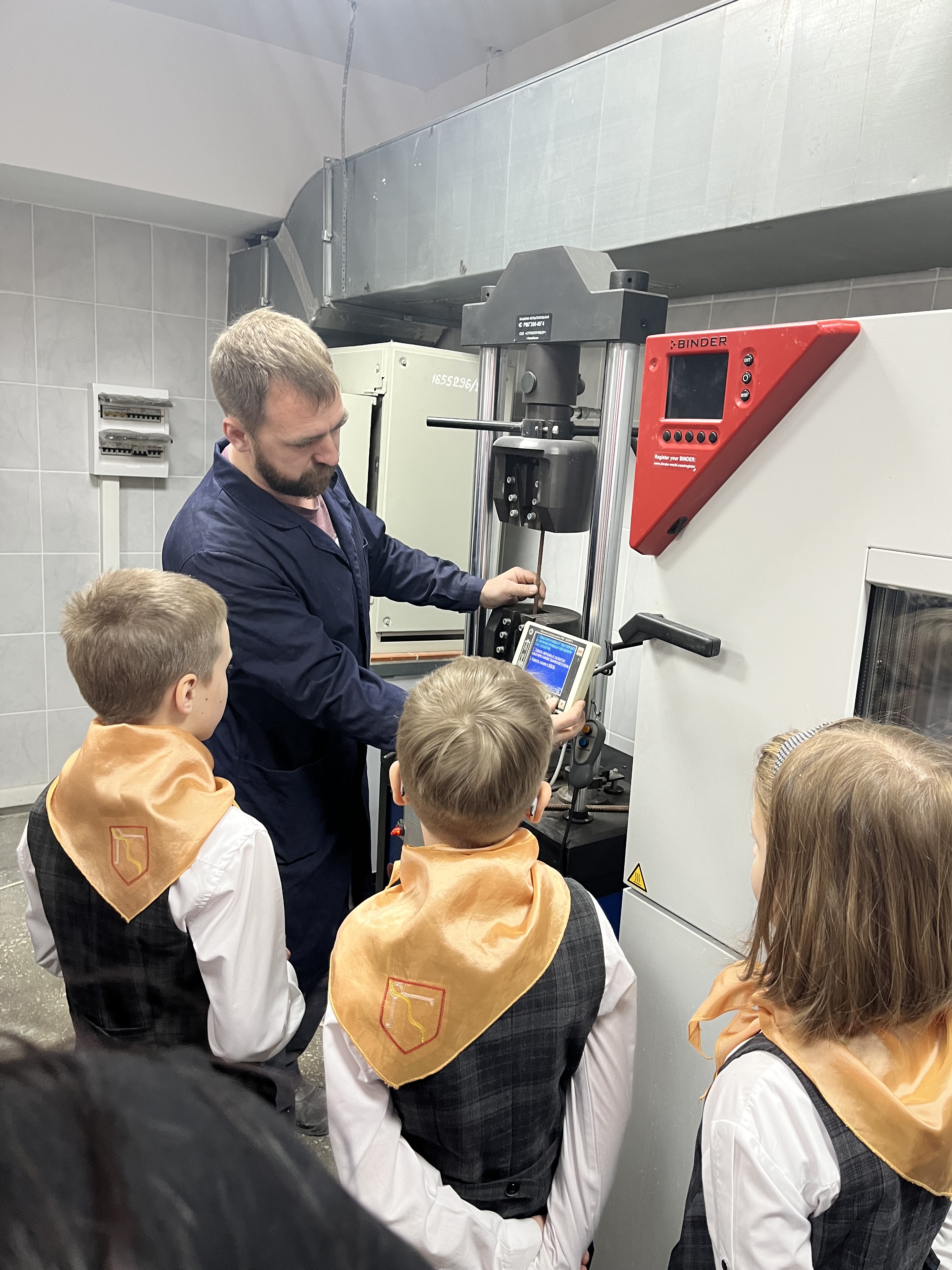 Школьникам рассказали об особенностях профессии строителя и о применении гипса в строительстве. На мастер-классе ребята посмотрели насколько просто и интересно работать с этим материалом. В ходе экскурсии по лаборатории школьники познакомились с современным оборудованием, увидели процесс испытания бетона на прочность и арматуры на растяжение.