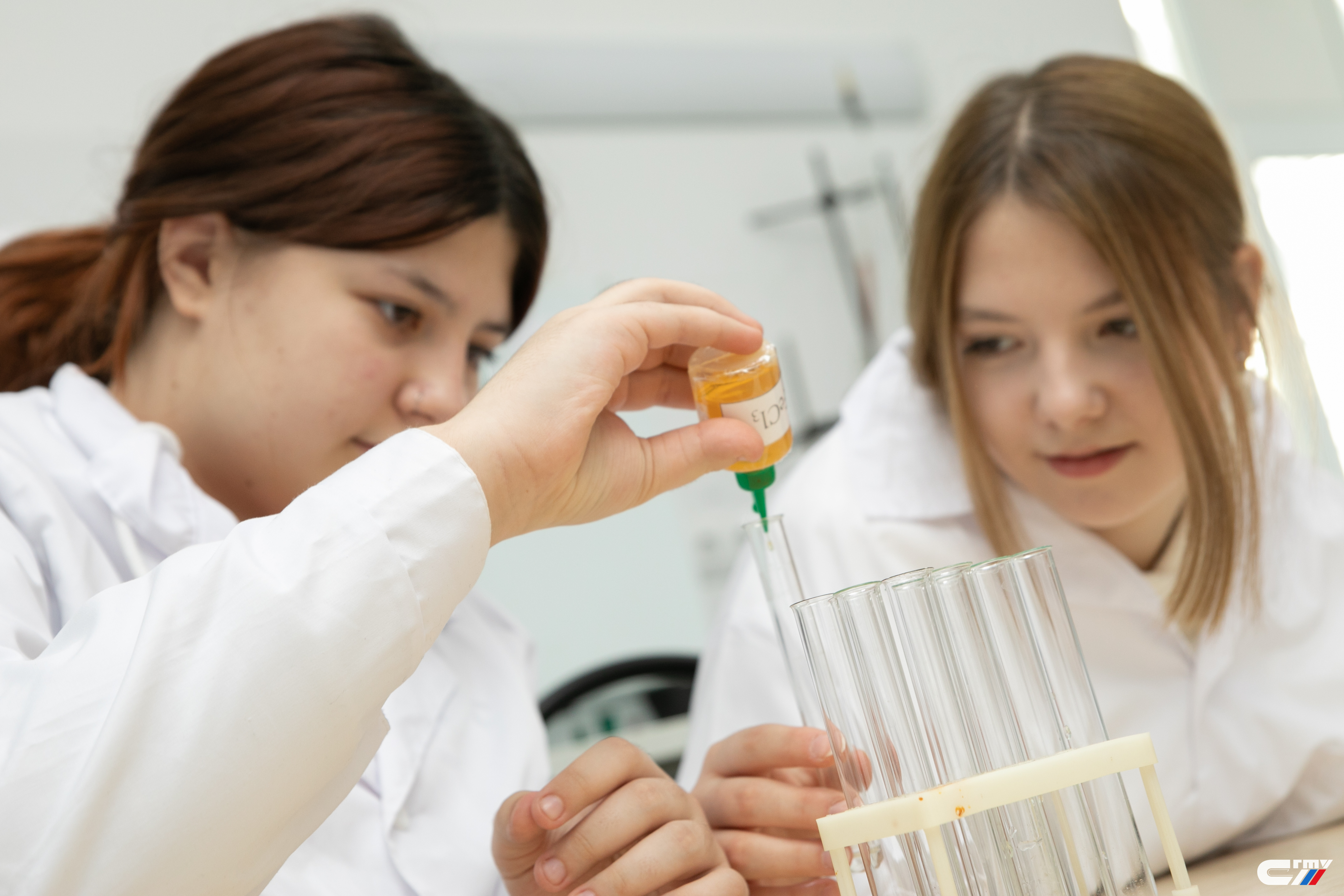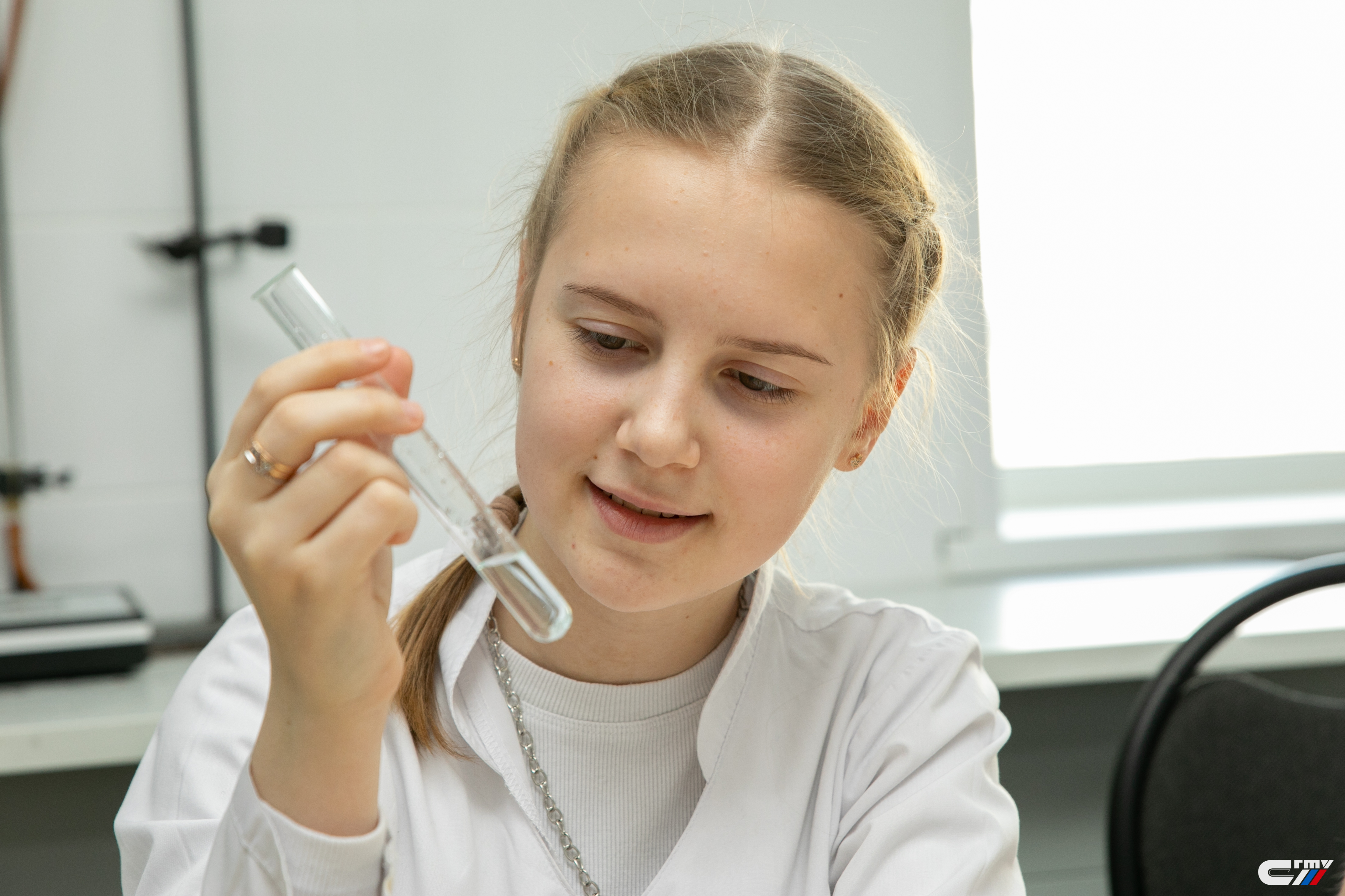 В рамках образовательной программы «В мире неорганических веществ» школьники 8 и 9 классов посетили кафедру «Химия и химическая технология материалов» физико-технического института. Доцент кафедры, кандидат технических наук Варвара Шпекина познакомила ребят с признаками химических реакций, ученики сами провели химические реакции, подтверждающие теорию.
