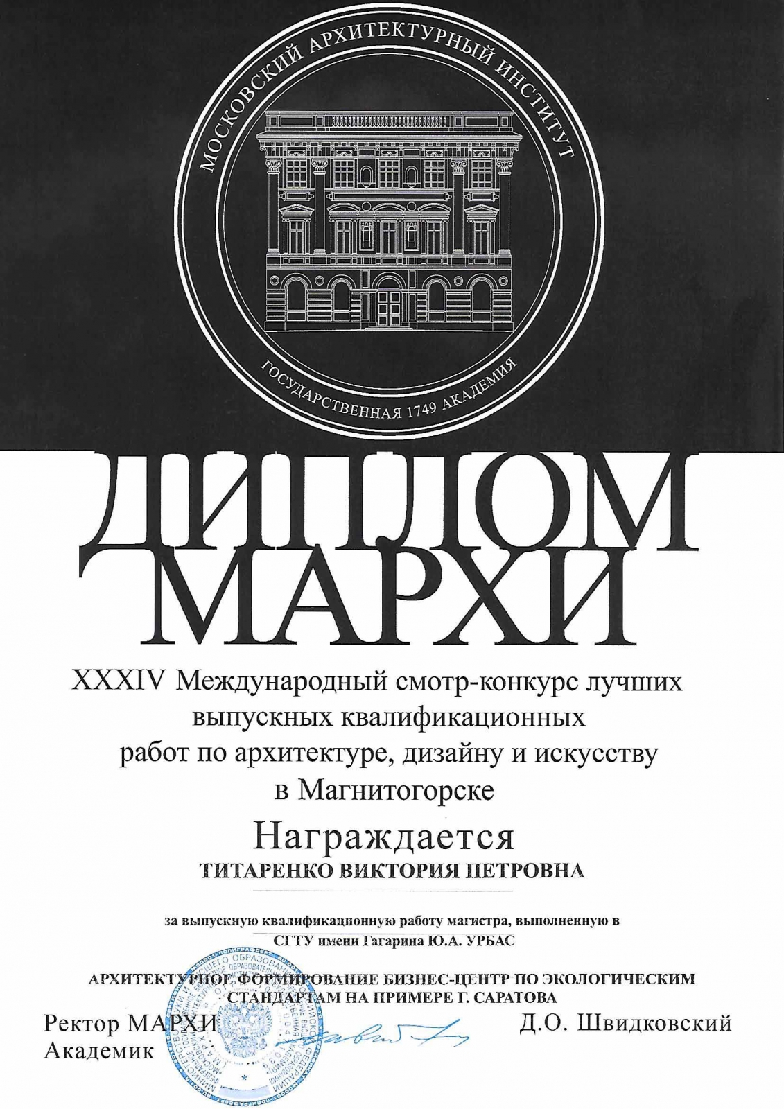 Студенты кафедры «Архитектура» — участники XXXIII смотра-конкурса ВКР