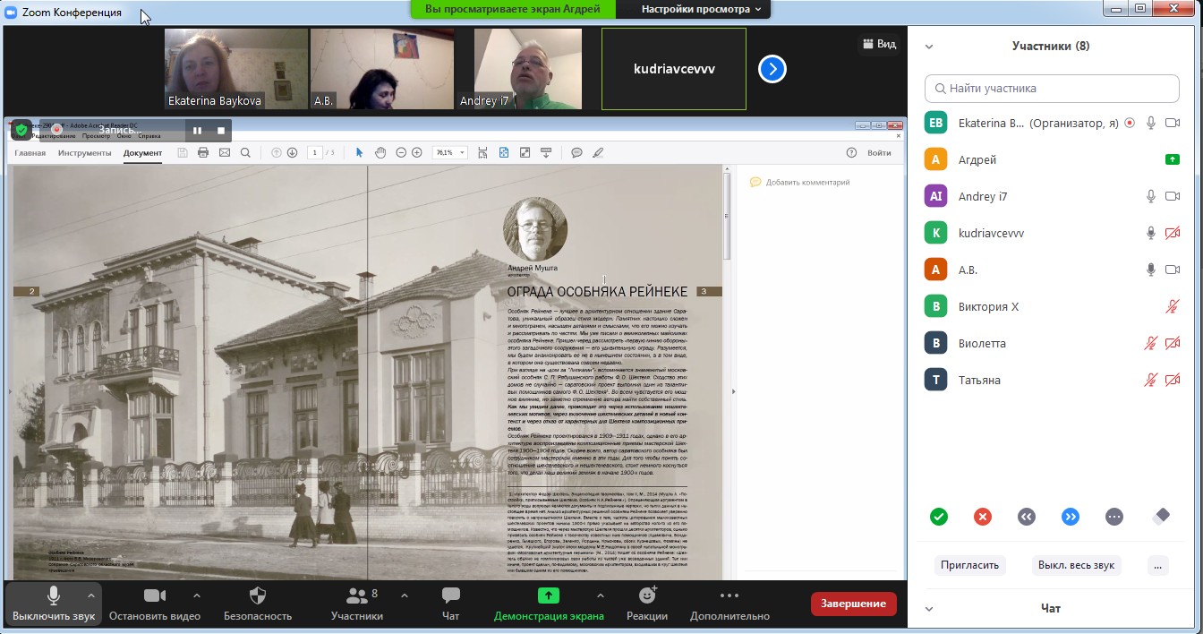 отмечен доклад Андрея Мушты "Ограда особняка Рейнеке"