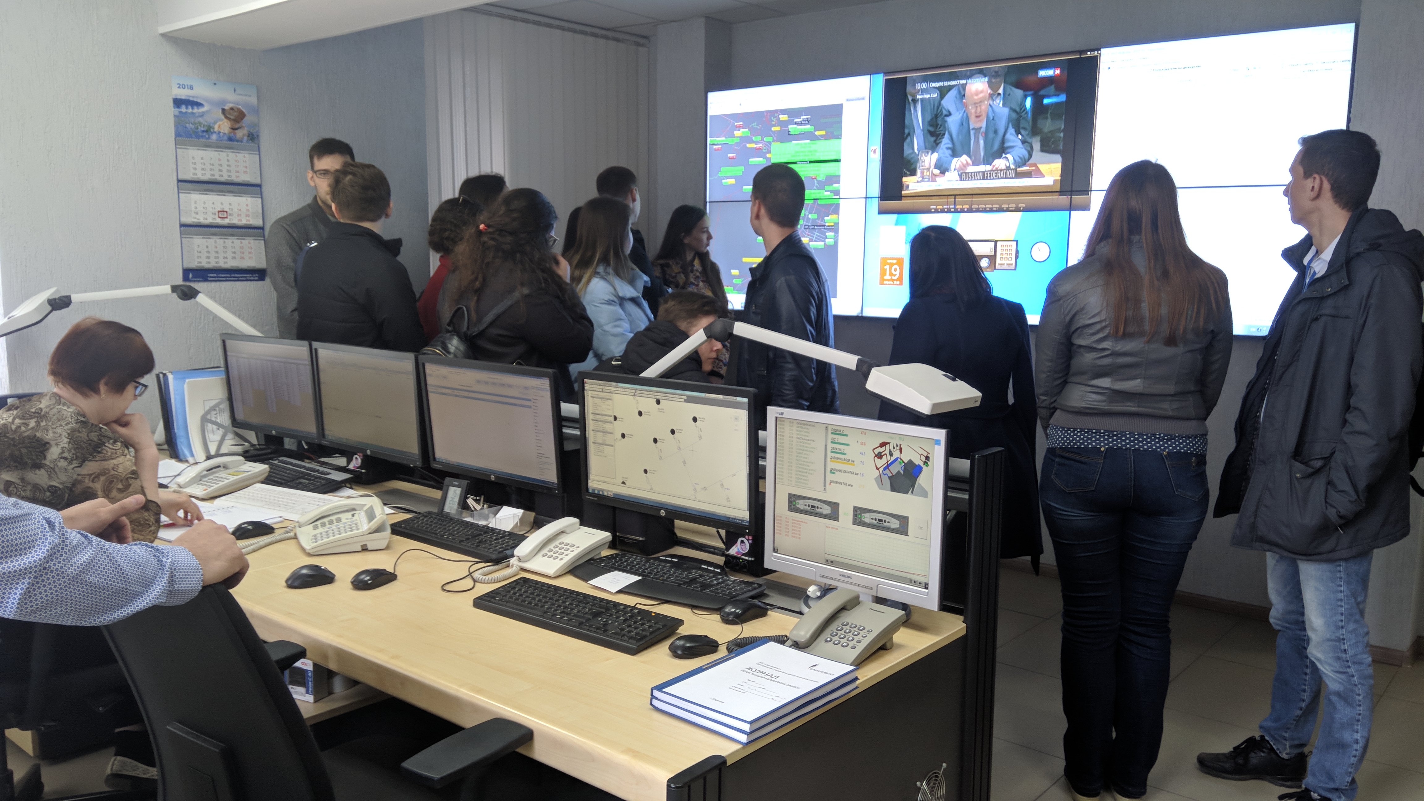 После этого заместитель начальника центральной аварийно-диспетчерской службы Игнатьев Павел Сергеевич провел студентов в помещения аварийно-диспетчерской службы АО «Саратовгаз». Студенты ознакомились с основными задачами работы службы, порядком приема, регистрации и обработки заявлений об утечках газа, методами и средствами оперативно-диспетчерского контроля газорегуляторных пунктов, особенностями локализации и ликвидации аварийных ситуаций в газовых хозяйствах города
