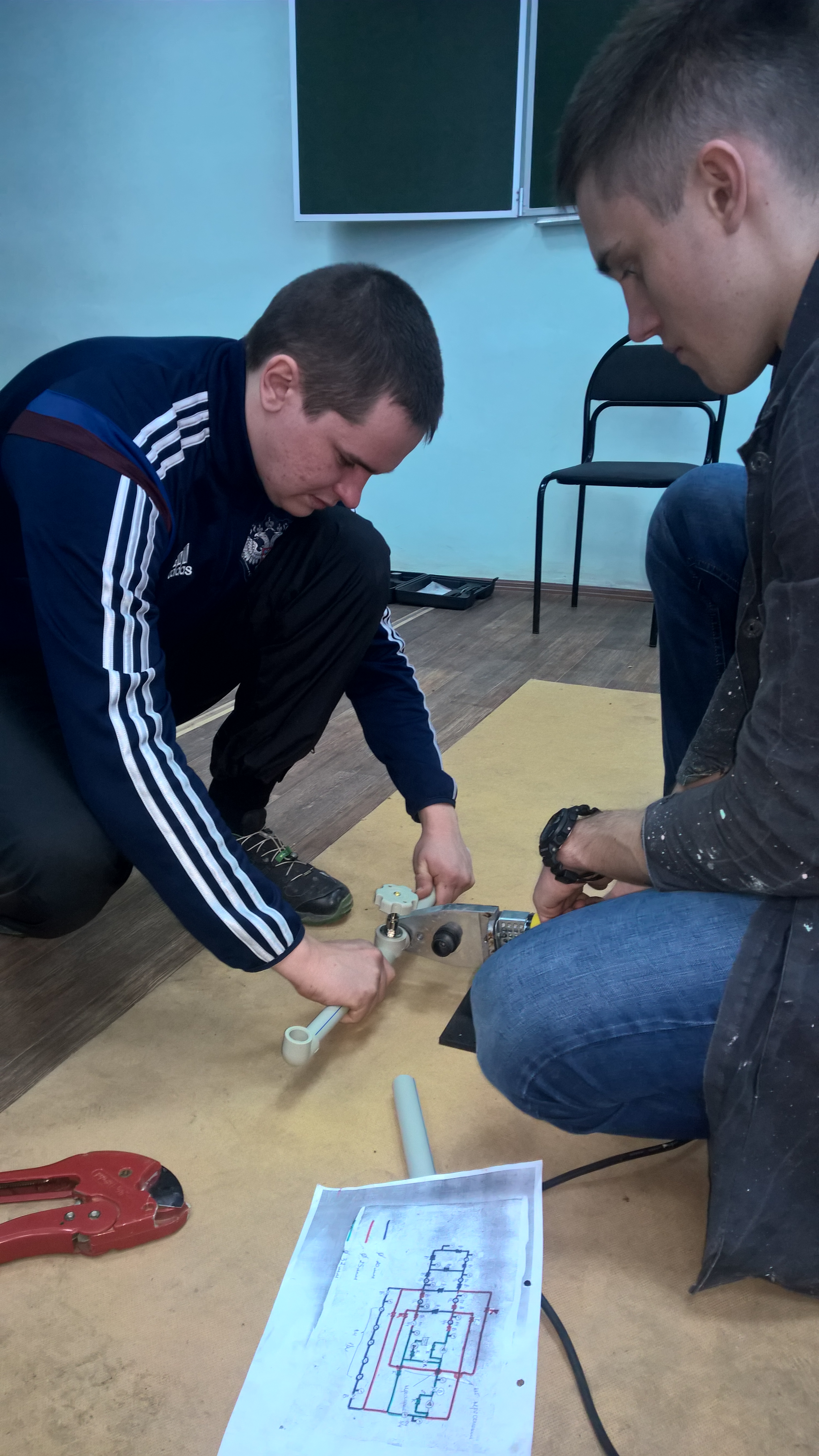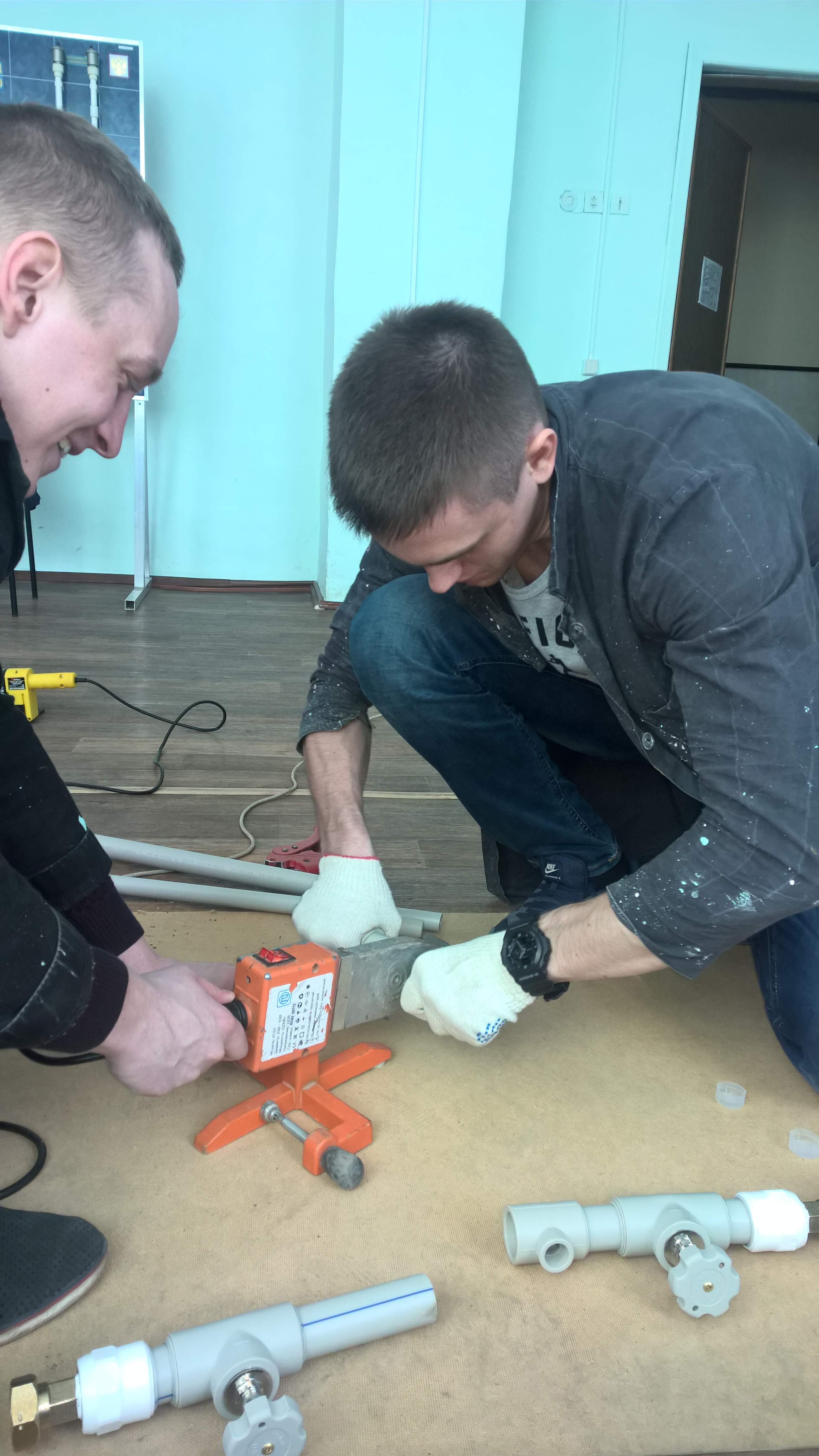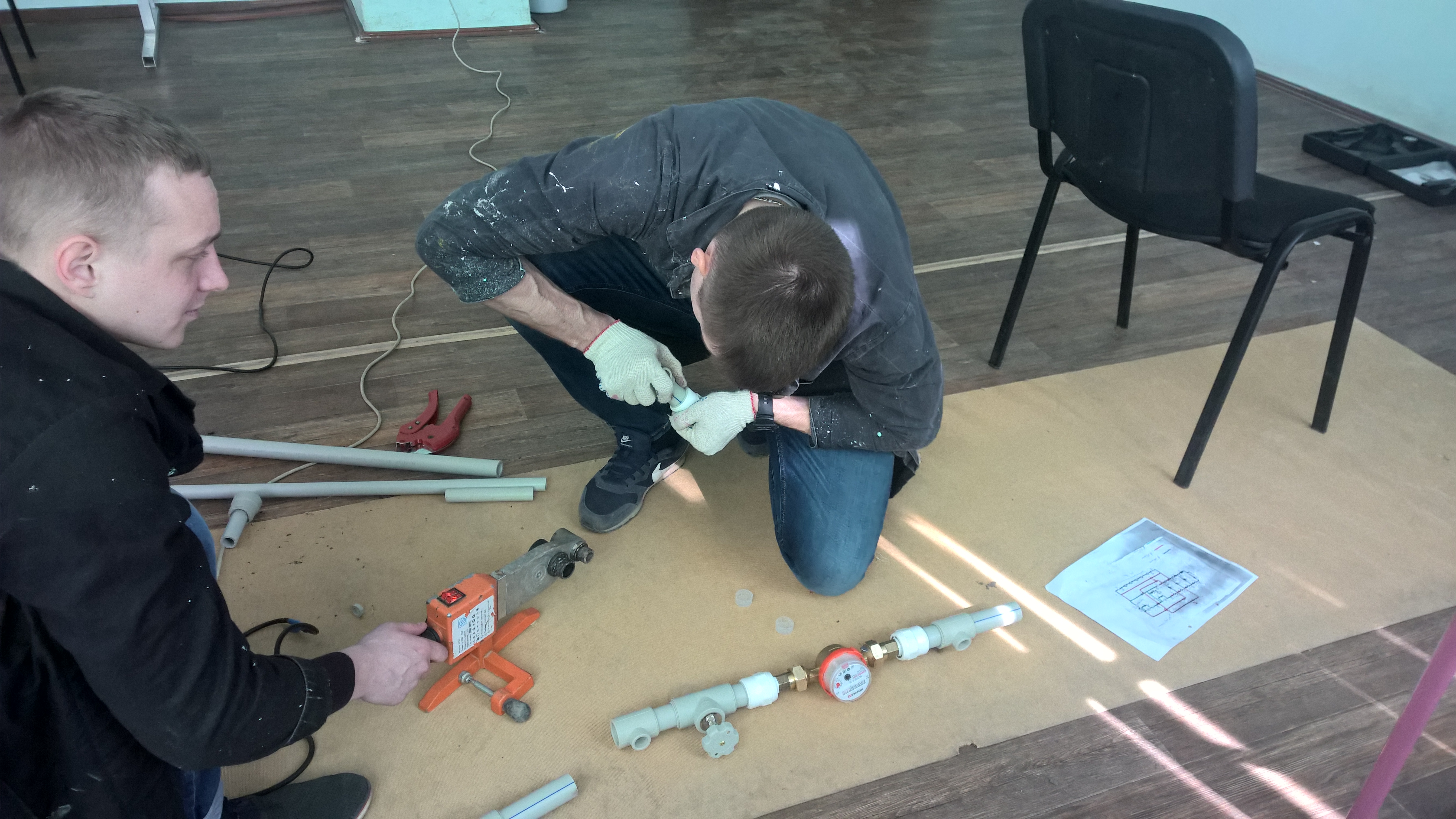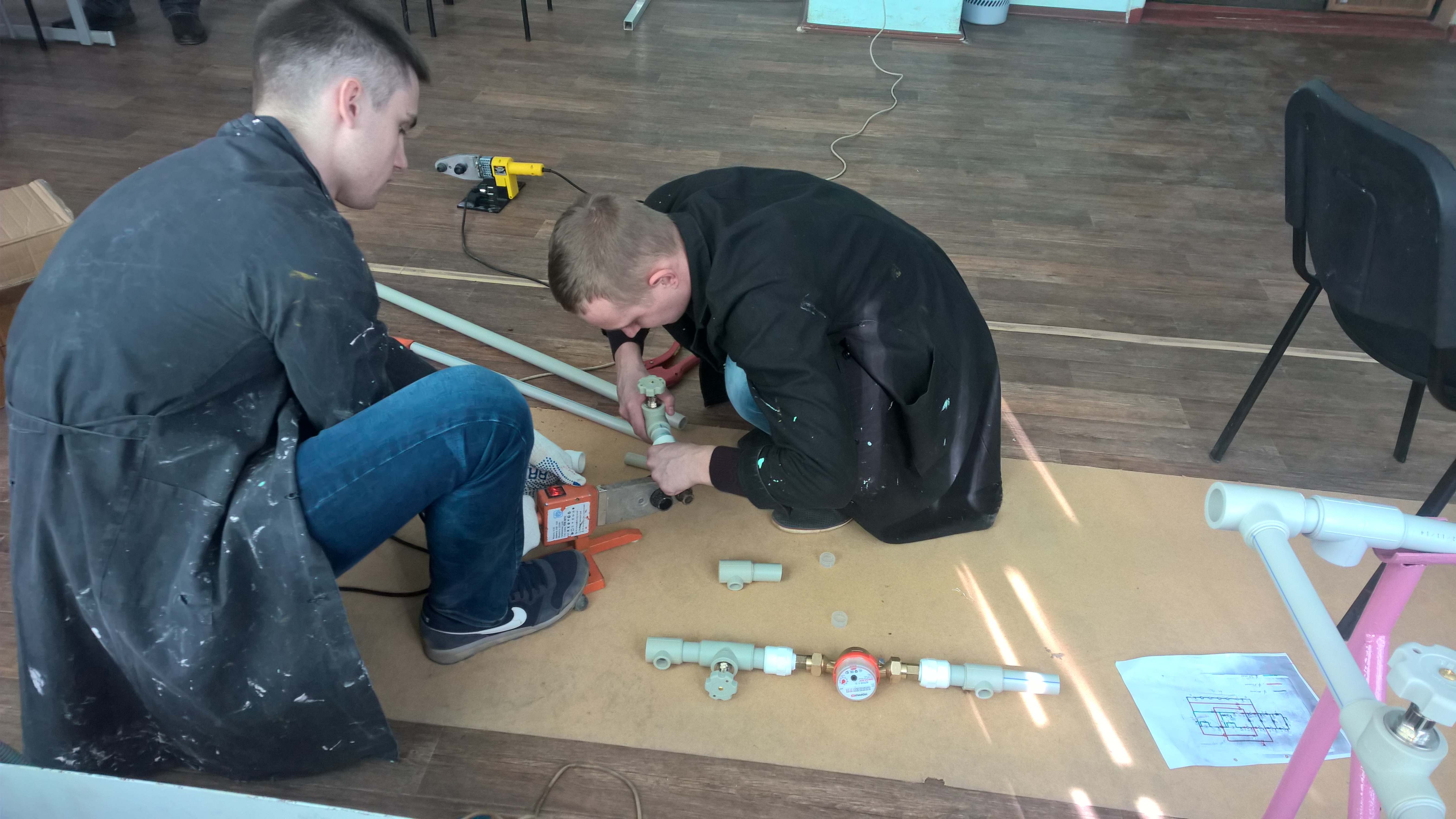 Студенты 2 курса б4-СТЗС Швецов В.А. и Логутов А.М. конструируют систему вентиляции на базе приточной установки MINIMED для изучения параметров воздухораспределения в помещении.