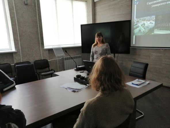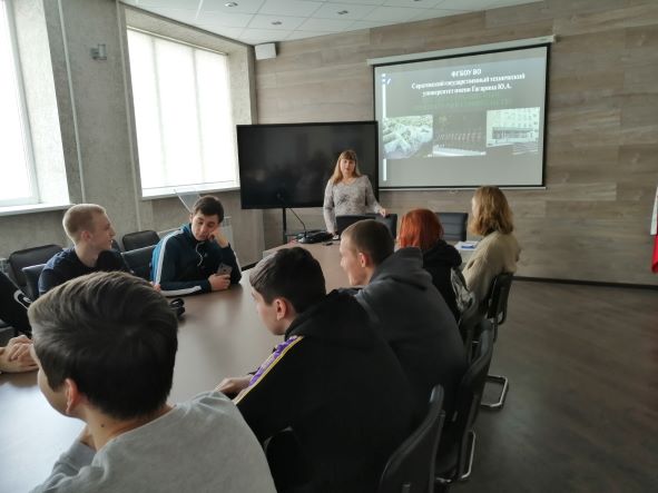 Доцент кафедры «Теплогазоснабжение и нефтегазовое дело», Наумова Ольга Валерьевна, рассказала о возможности продолжить обучение после колледжа по направлению «Теплогазоснабжение и вентиляция» в СГТУ, а также о перспективах трудоустройства в крупных проектных организациях г. Саратова. Ребята слушали с интересом.