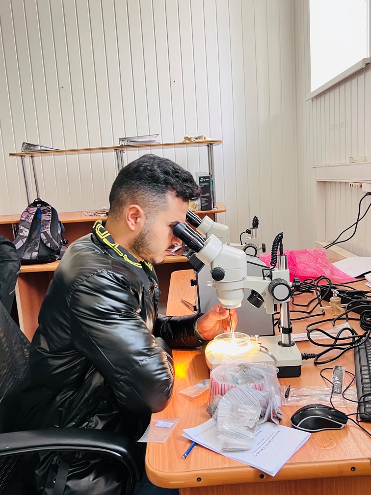 Благодаря партнерству с ООО «Геофизмаш-Сервис», студенты самостоятельно определяли нефтенасыщение образцов керна и шлама с помощью анализа ЛБА на люминоскопе ФИЛИН LED GEO, проводили макроописание шлама с использованием микроскопа ALTAMIS M0745 и ознакомились с отчетными материалами партии ГТИ, изучив принципы составления графической и текстовой документаций по интервалам бурения скважины.