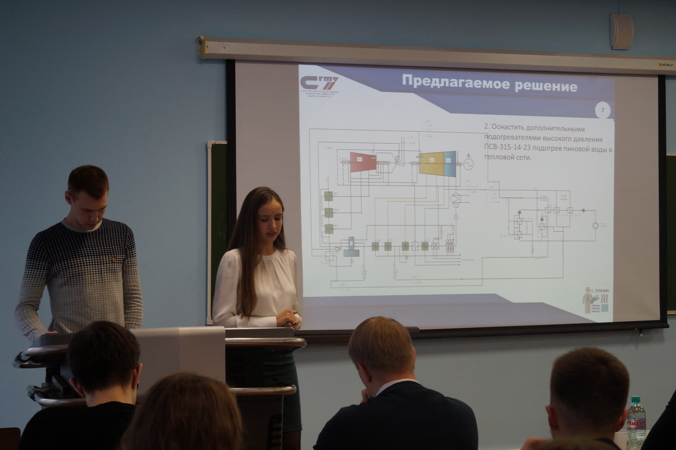 Команда «5 причин» (Николаева Е.И. (капитан команды), Сидорин А.А., Пичугин Е.А., Изотова Е.А., Медведева Н.Д.) предложила неординарный способ перераспределения производственного отбора паровой турбины типа ПТ-65\75-90\13, позволяющий снизить расходы топлива на выработку тепловой и электрической энергии на теплоэлектроцентралях. Благодаря нестандартному подходу к решению проблемы перераспределения пара производственного отбора и предложению инновационной тепловой схемы, проект команды занял 2 призовое место.