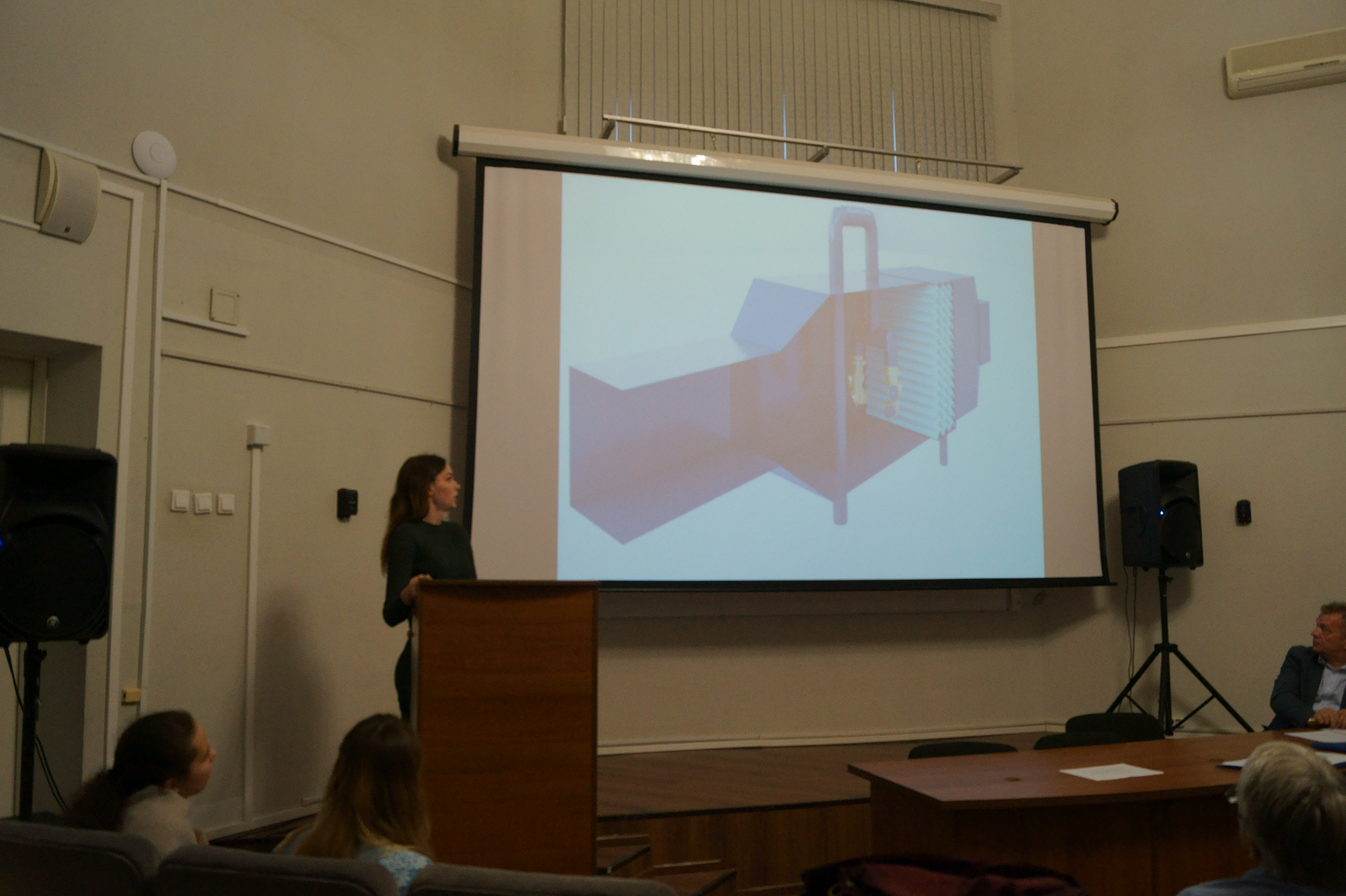 Студент гр. б4-СТЗС41 Изотова Е.А. вынесла на суд экспертного совета проект «Энергосберегающий и экологически безопасный комплекс производства тепла и холода». В своем проекте Изотова объединила системы гелеотеплоснабжения, кондиционирования воздуха и систем оперативного диспетчерского контроля.