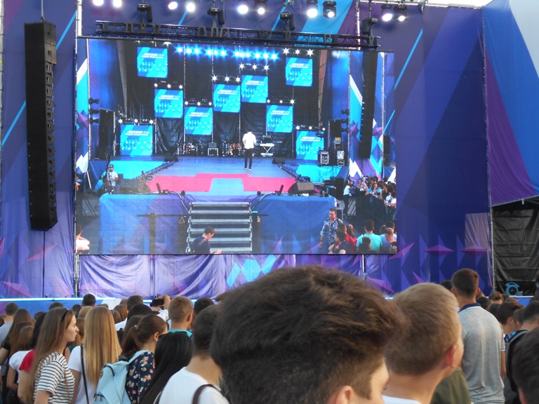 Начался праздник студенческим парадом. Колонну нашего вуза возглавили известные герои Белка и Стрелка. Собравшиеся студенты всех вузов прошли по пешеходной зоне города до Театральной площади. Среди них были студенты первого курса с1-СЗС11 (куратор М.В. Федоров).